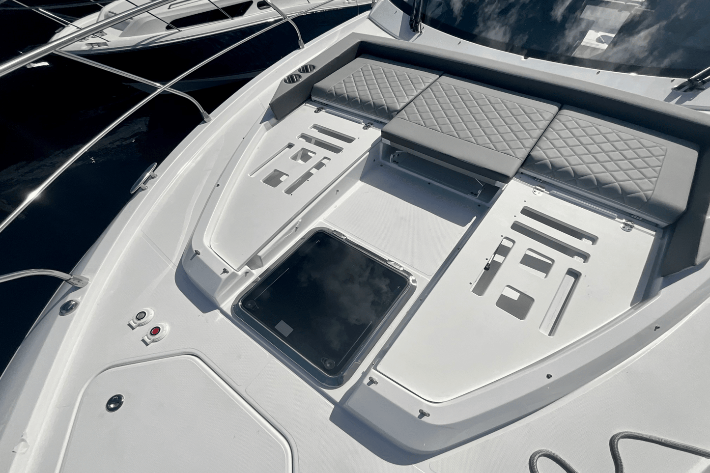 - Entertaining and Relaxation Spaces: The boat is designed for socializing with a spacious cockpit, a wet bar, a grill, and an extended swim platform for easy access to the water.