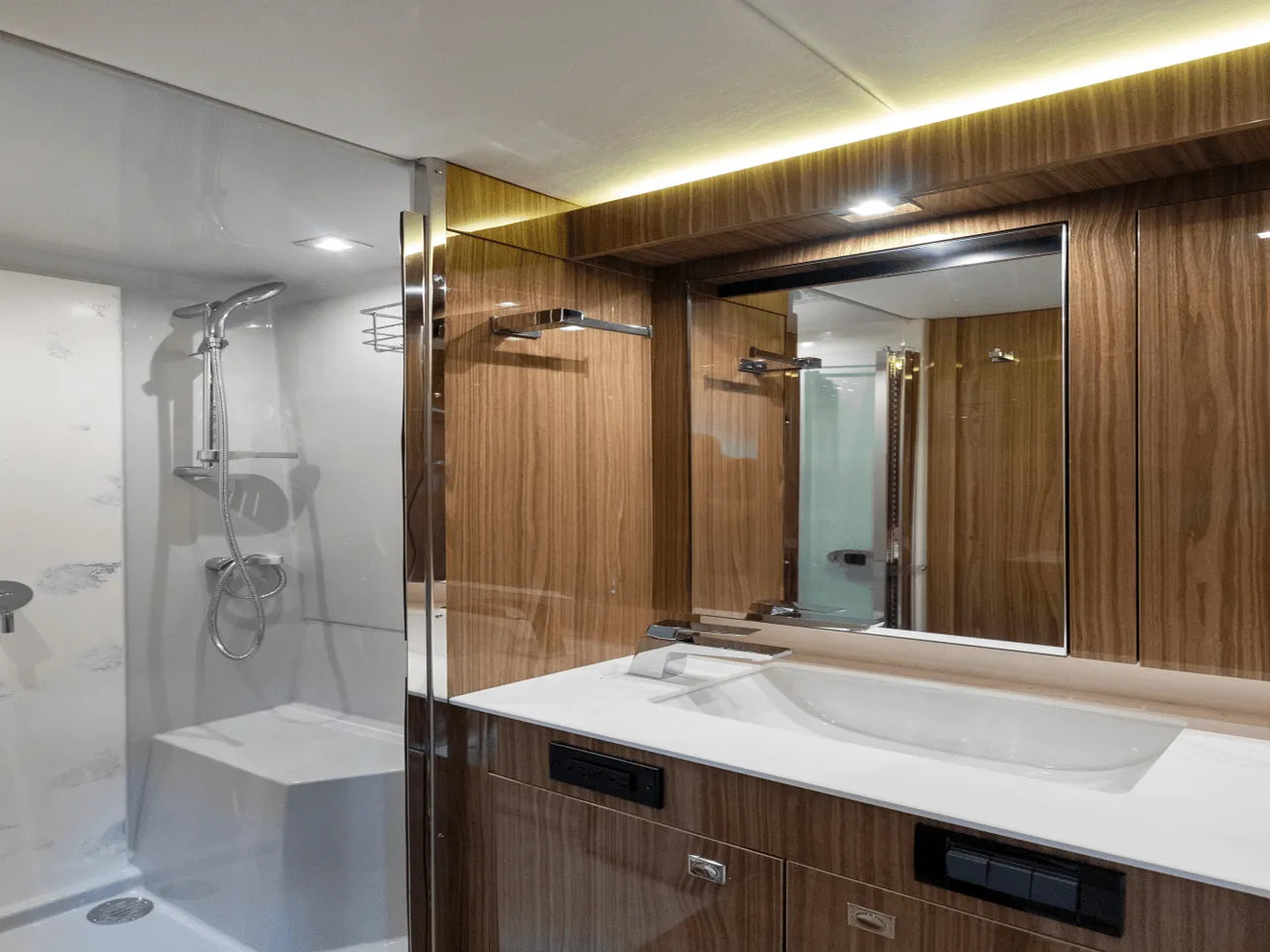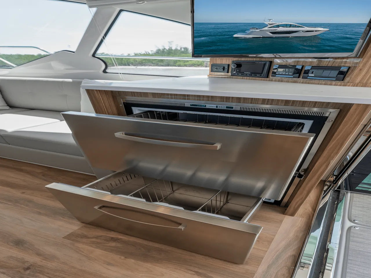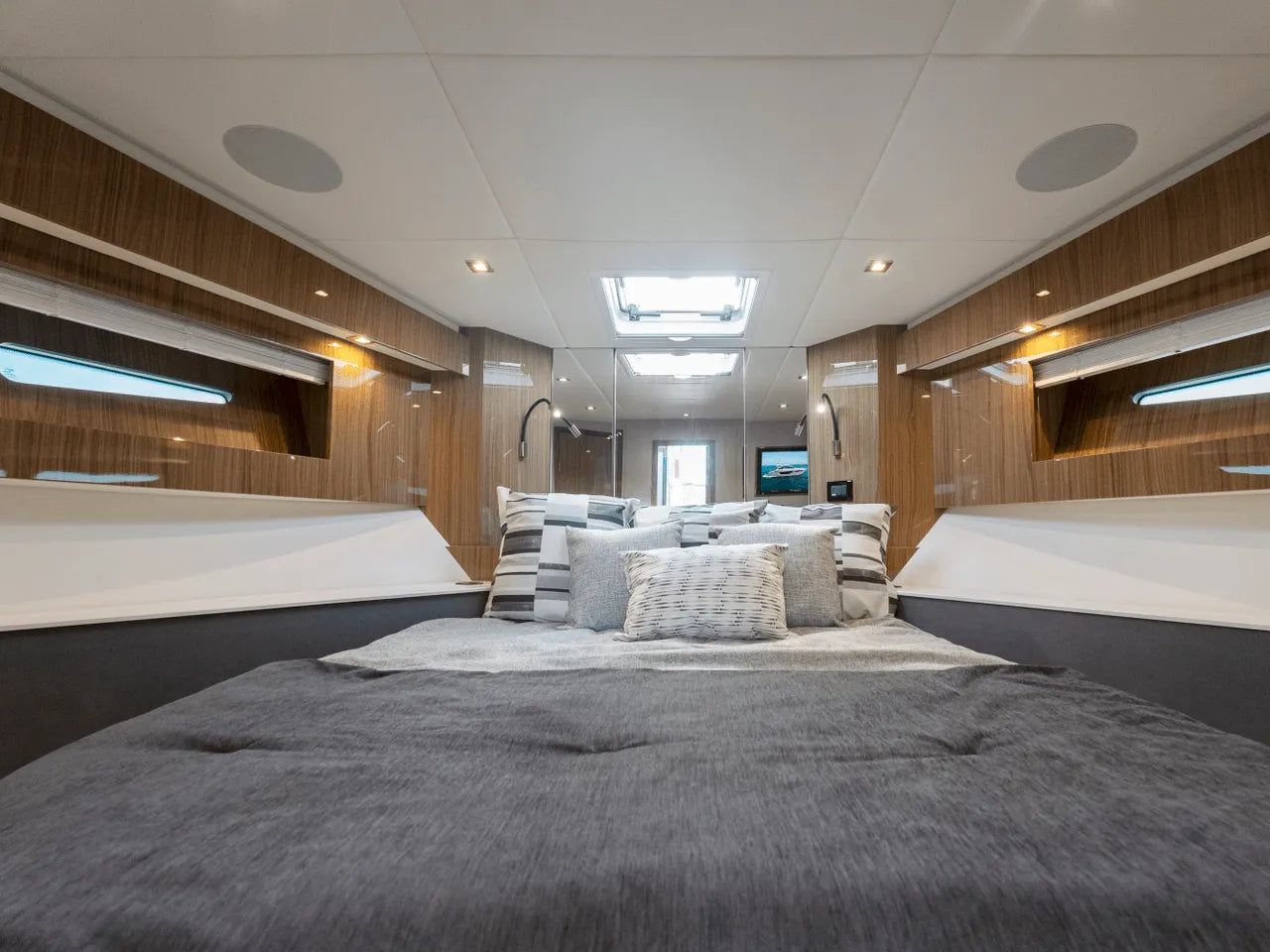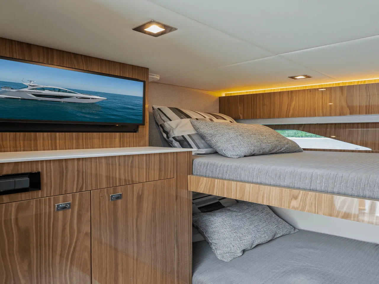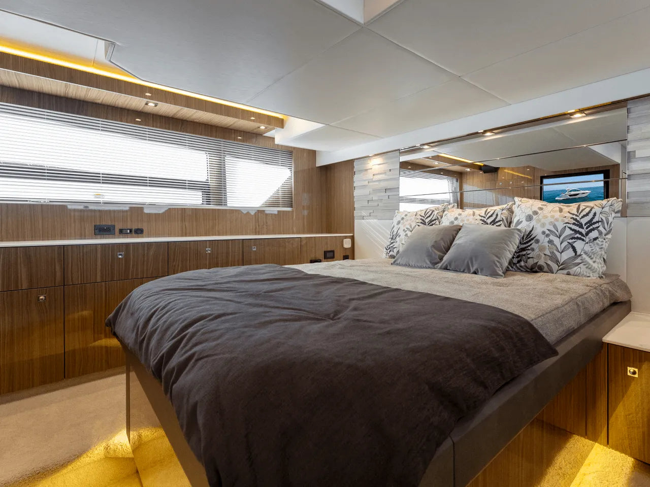Powered by two VOLVO D8 700 IPS engines, delivering a remarkable total power of 1100 HP, the 50 Cantius guarantees exhilarating adventures. Glide through the waves with confidence, leaving your cares behind as you embrace the thrill of speed and agility.