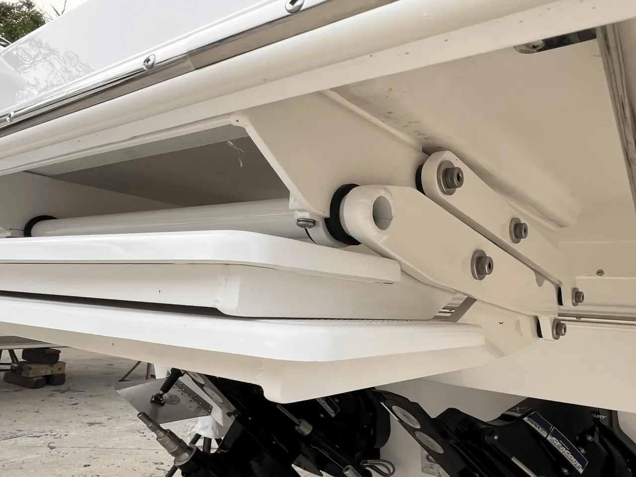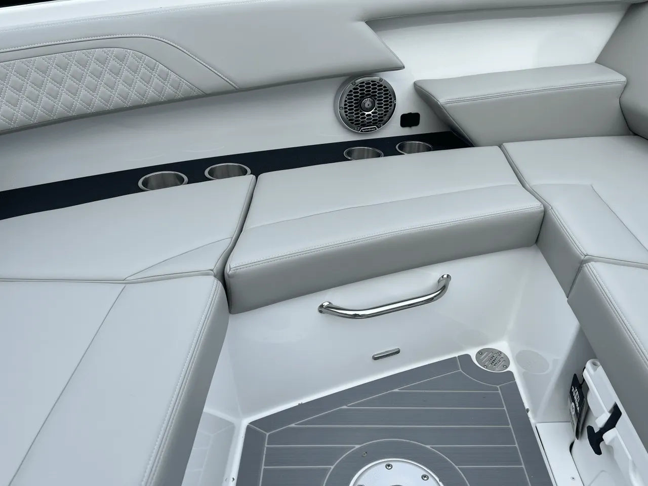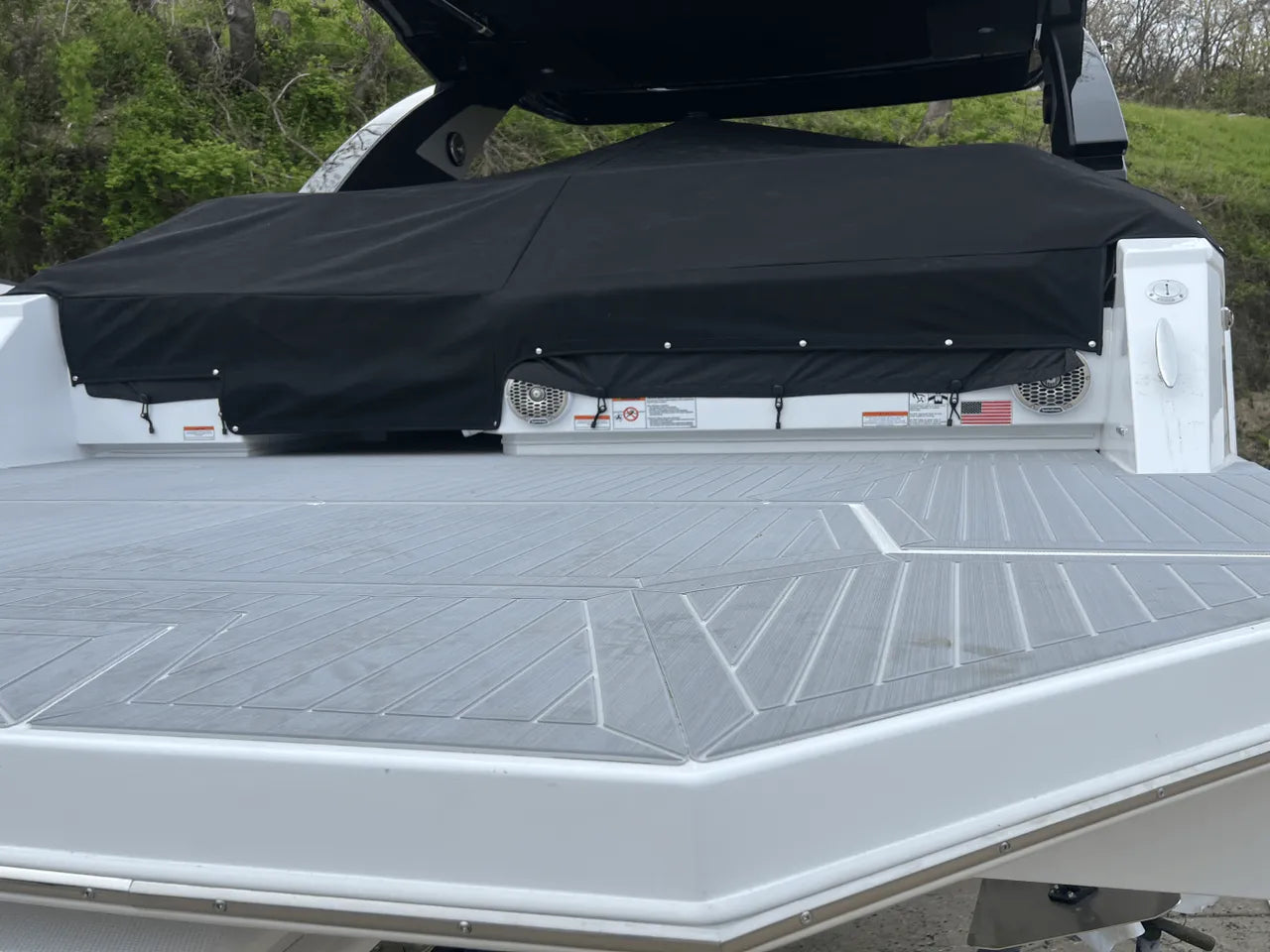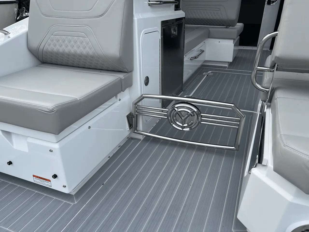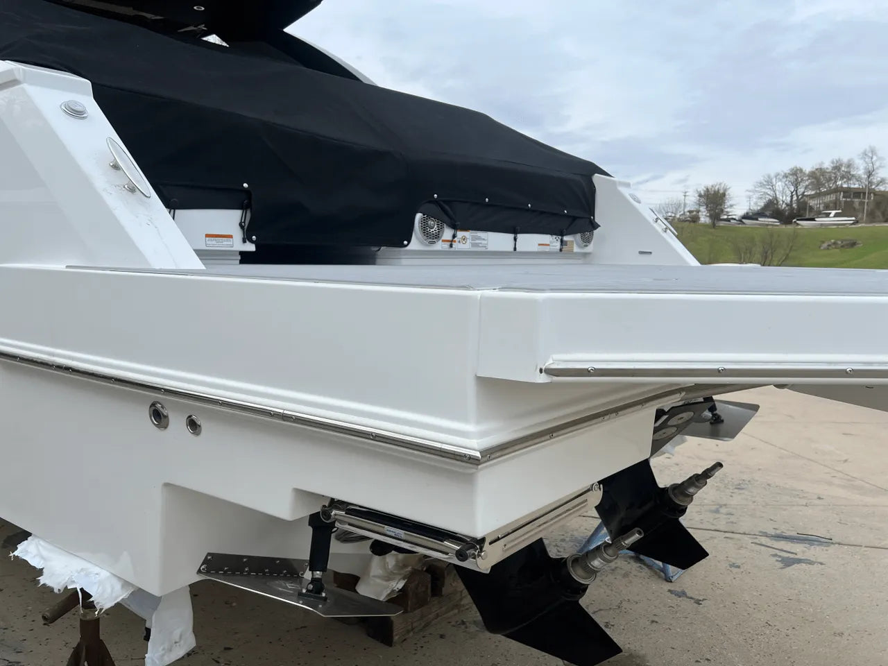 - Exceptional Power & Control: This vessel is equipped with twin MerCruiser 8.2 MAG 380 HP inboard/outboard engines with Bravo III drives. This high-performance setup provides a combined 760 HP, ensuring exhilarating top-end speed and a smooth, powerful ride. The Axius joystick system with Digital Throttle and Shift (DTS) offers intuitive and precise control, making docking and low-speed maneuvering effortless.
