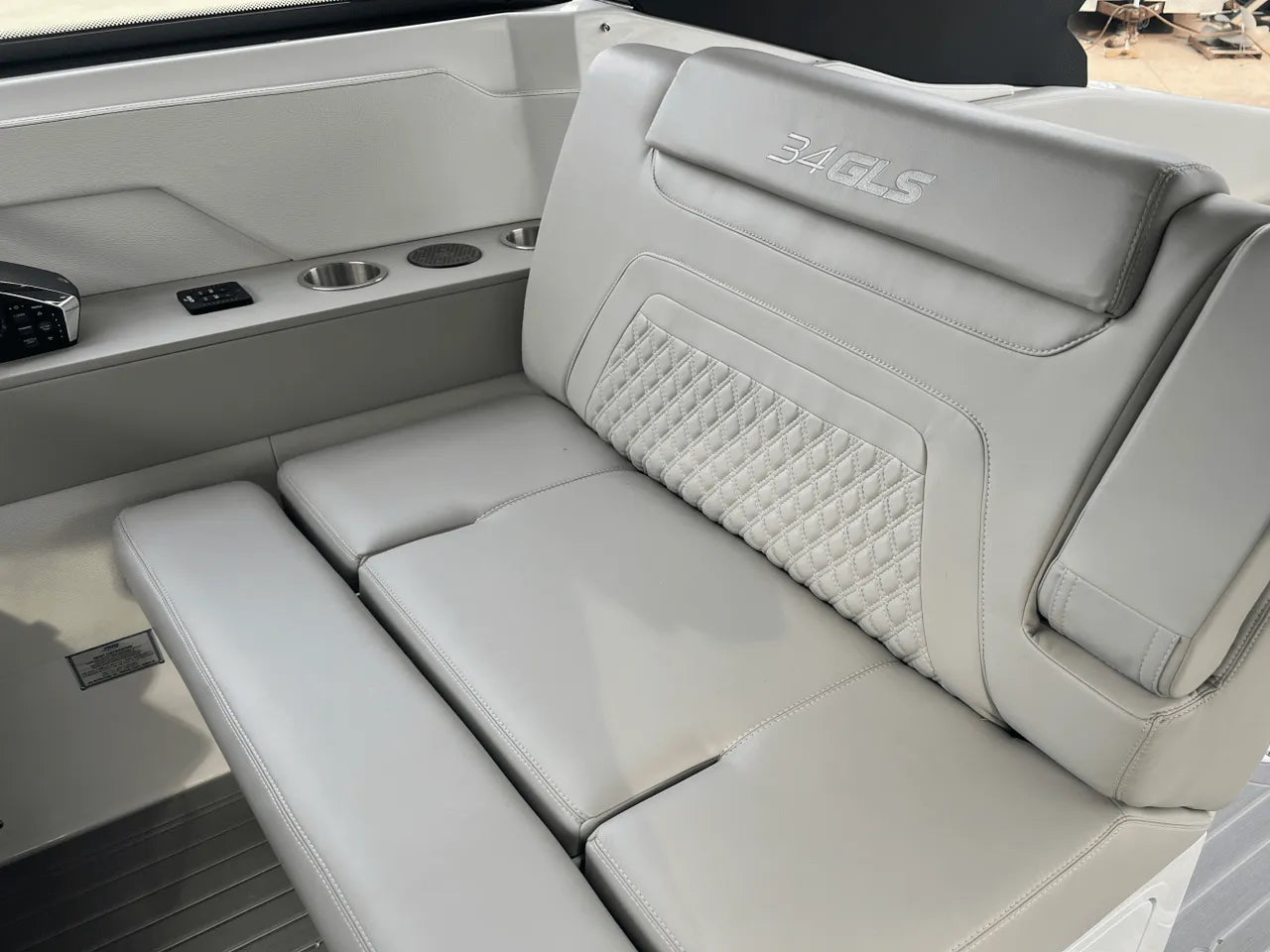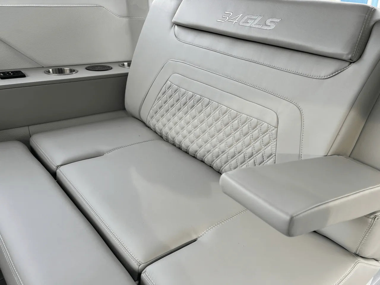 The 34 GLS is celebrated for its spacious layout and innovative design, which provides seamless flow between the bow, cockpit, and cabin, ensuring a great experience for everyone on board.