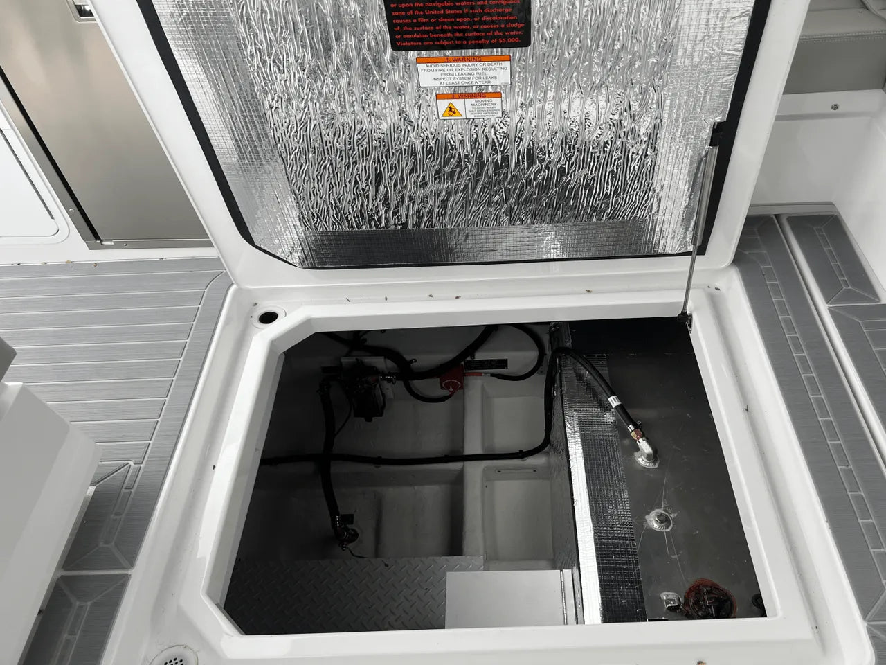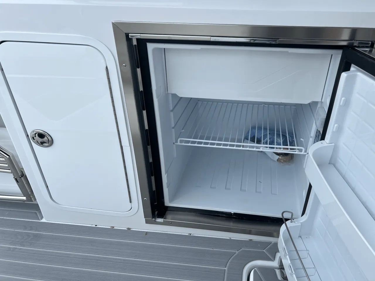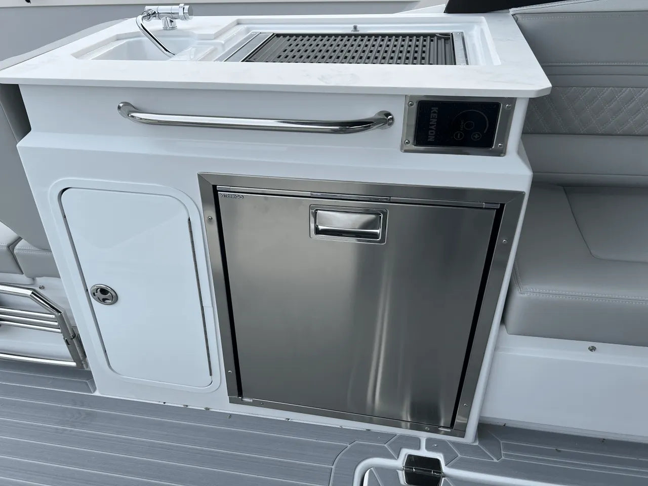 - Expansive Social Zones: The boat features an expansive cockpit and bow lounge with versatile seating arrangements that can be converted into large sun pads for relaxation. The cockpit galley is equipped with a grill, refrigerator, and sink, making it easy to entertain and serve guests.