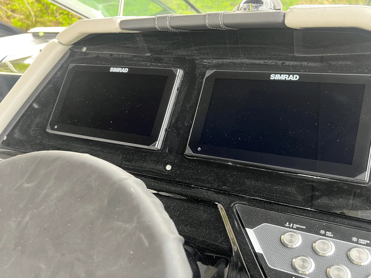 - Premium Technology: The helm is impeccably designed with modern electronics, including a Simrad navigation system and joystick piloting.