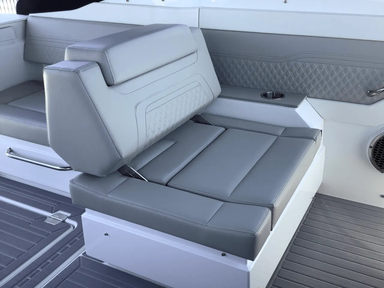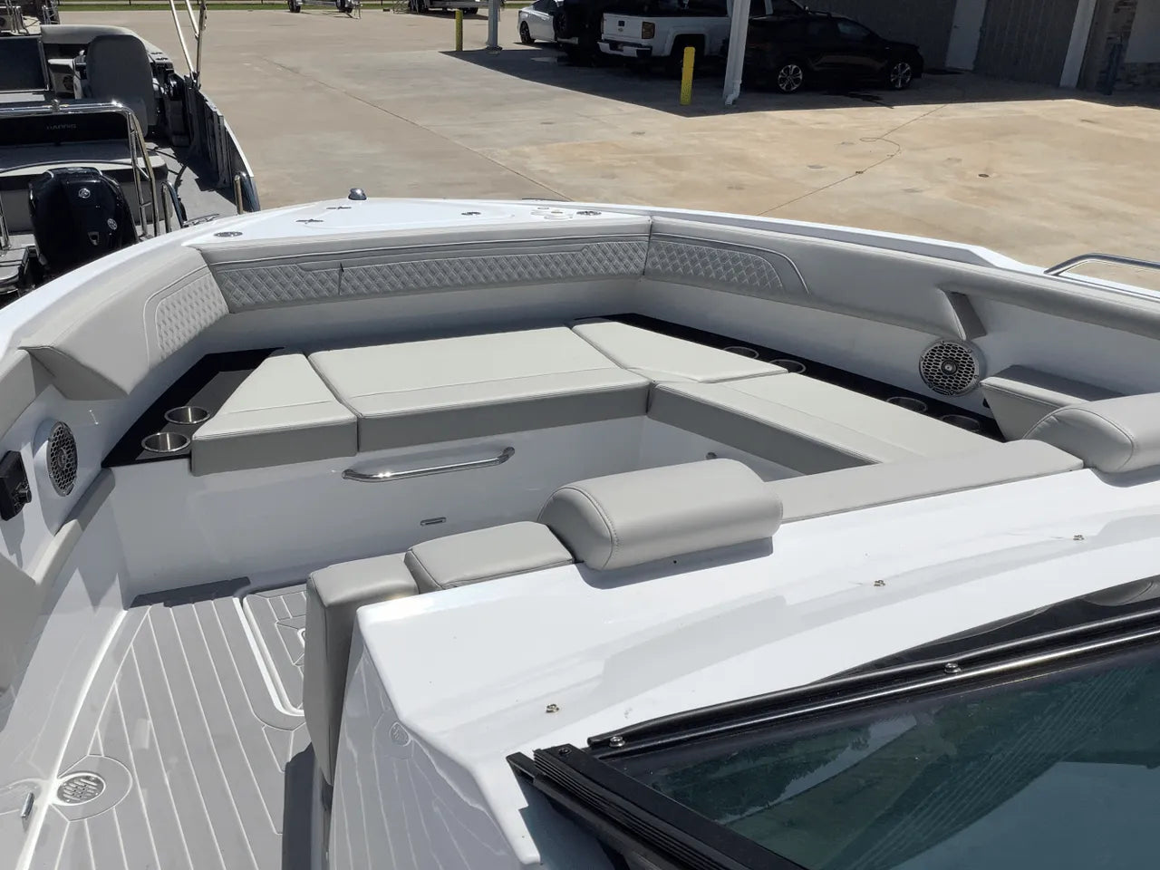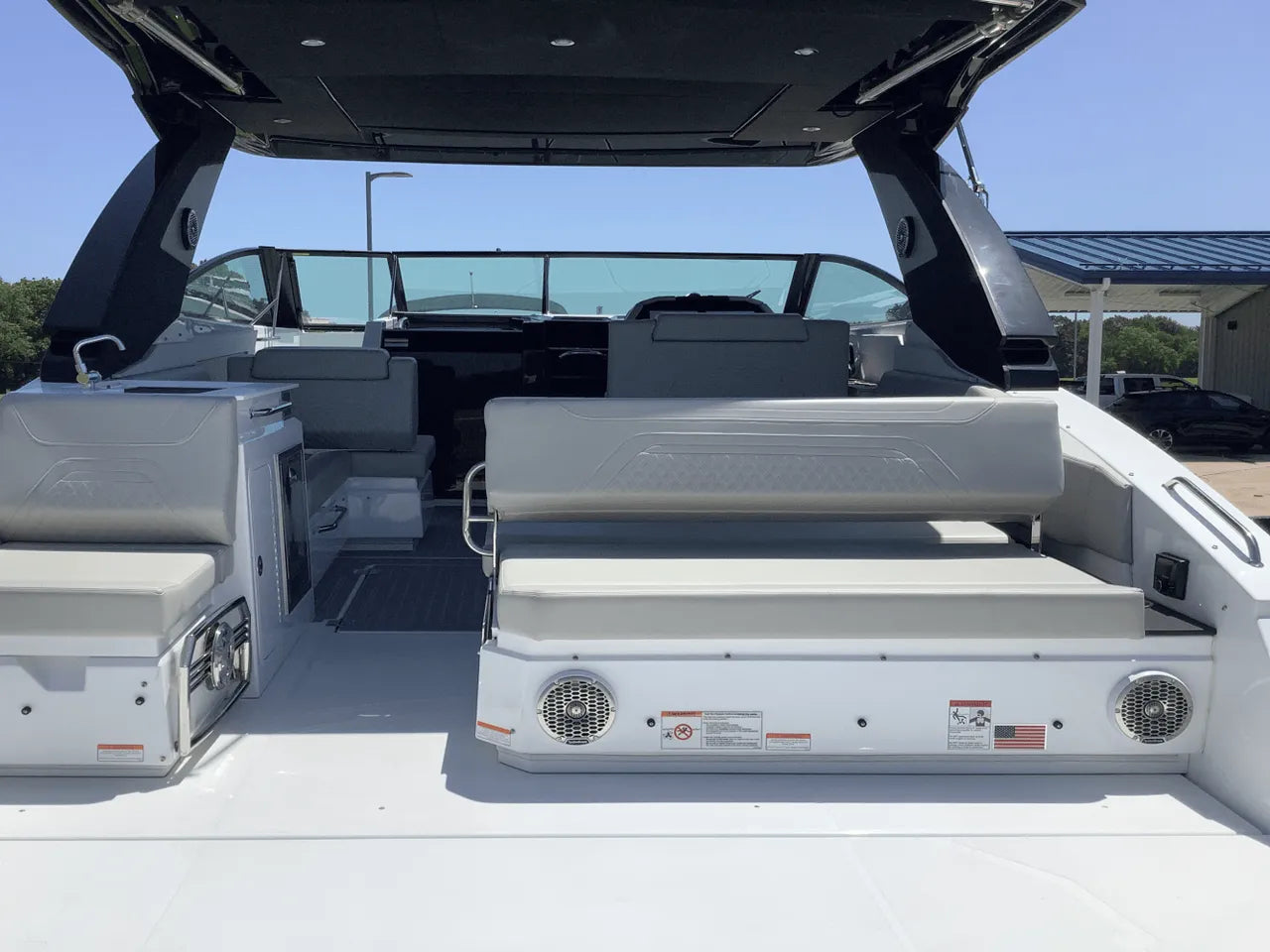 - Luxurious & Versatile Layout: The yacht's deck is an entertainer's dream. The spacious cockpit features comfortable seating, a wet bar, and a versatile aft area. The bow provides deep, comfortable seating with a table that can convert into a full sunpad.