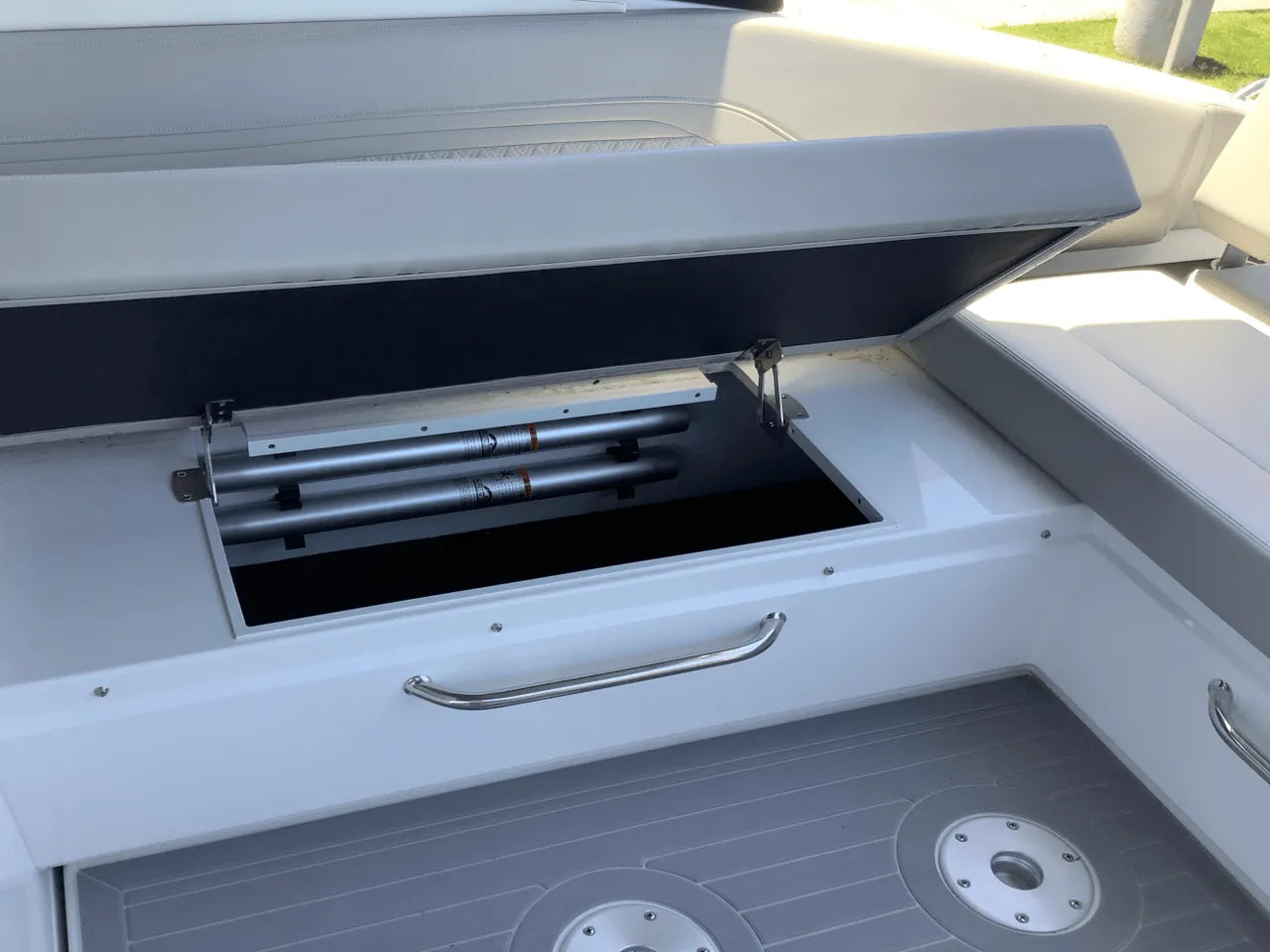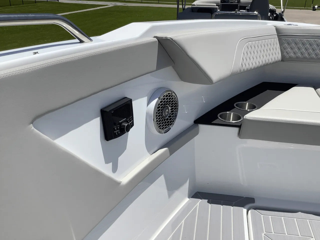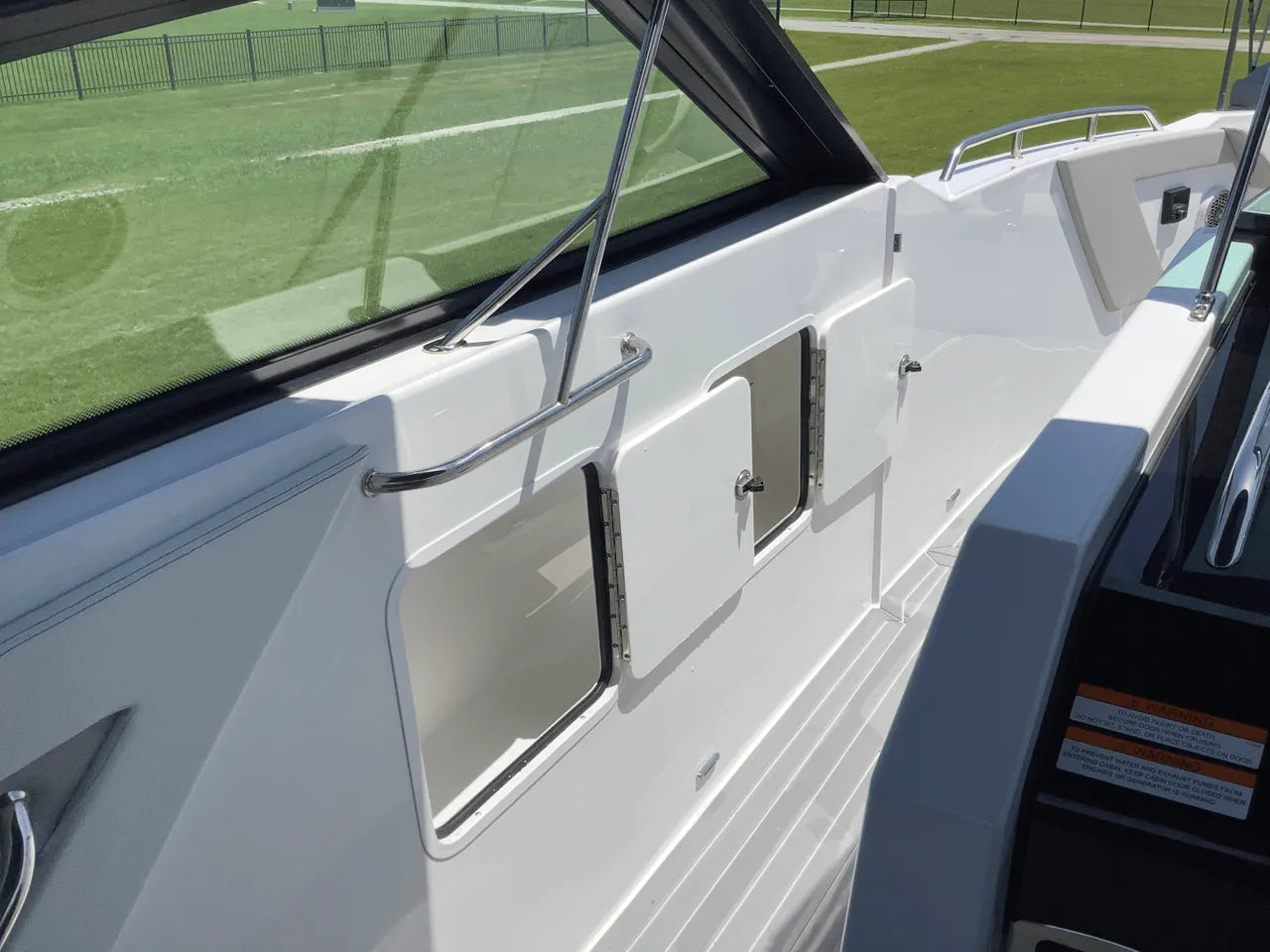 - A Go Boating Gear kit containing essential items like personal and throwable flotation devices, flares and a horn for signaling, a fire extinguisher, dock lines, an anchor, a boat hook, cleaning supplies, and more, so you're fully equipped and ready to enjoy your new boat.