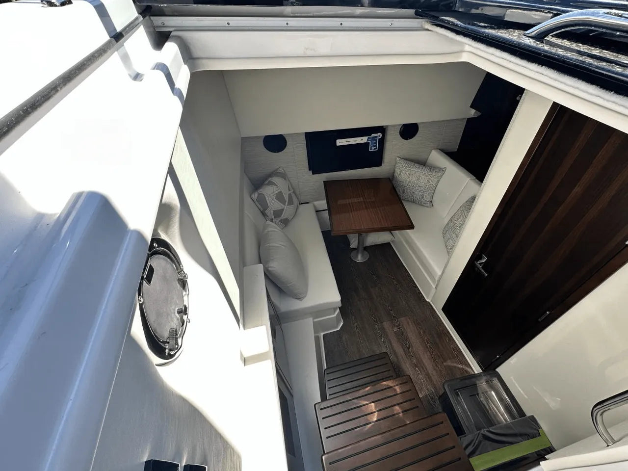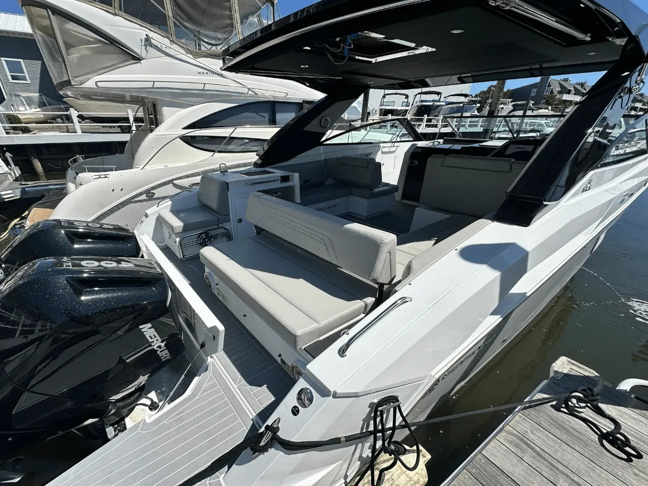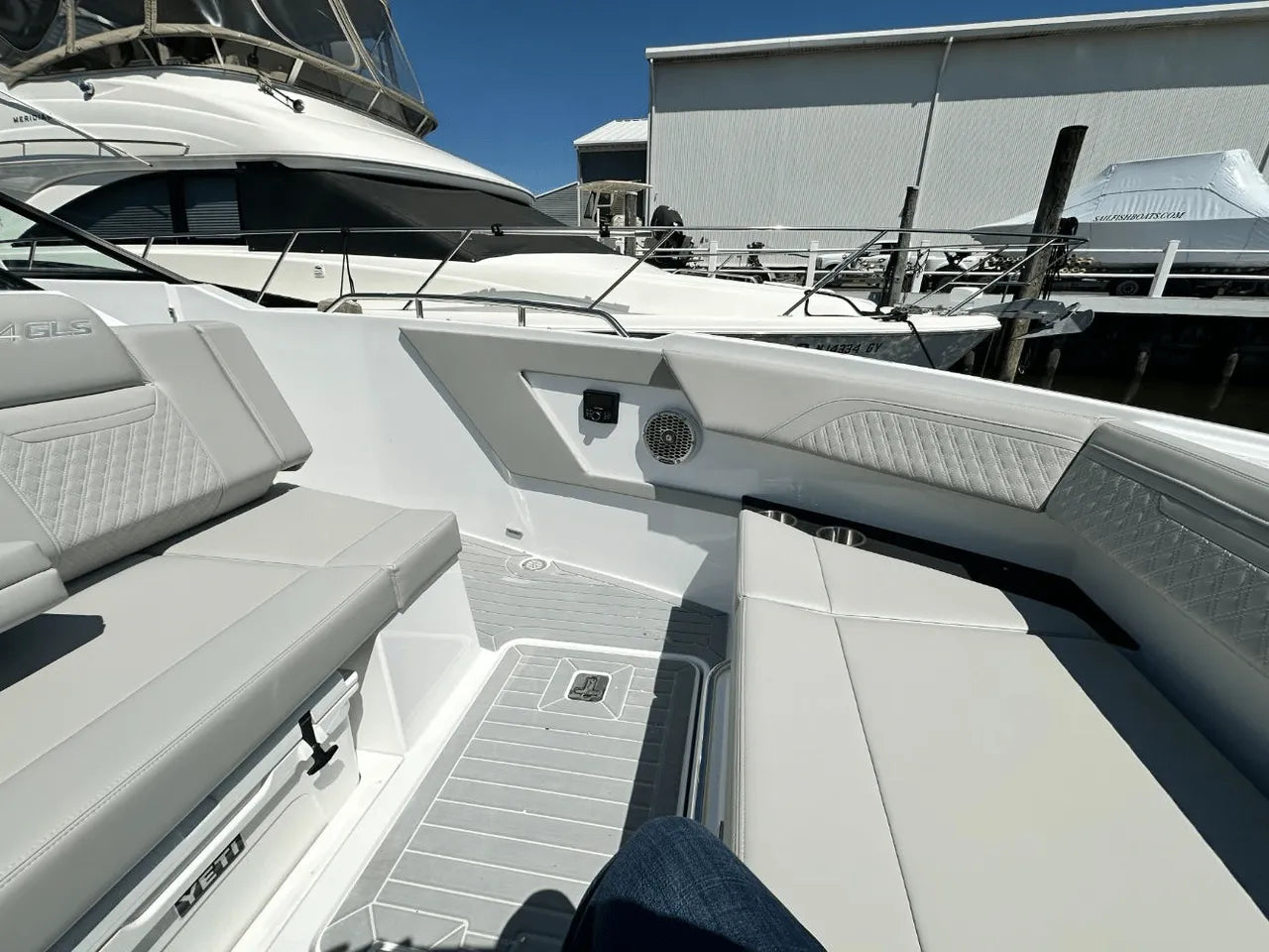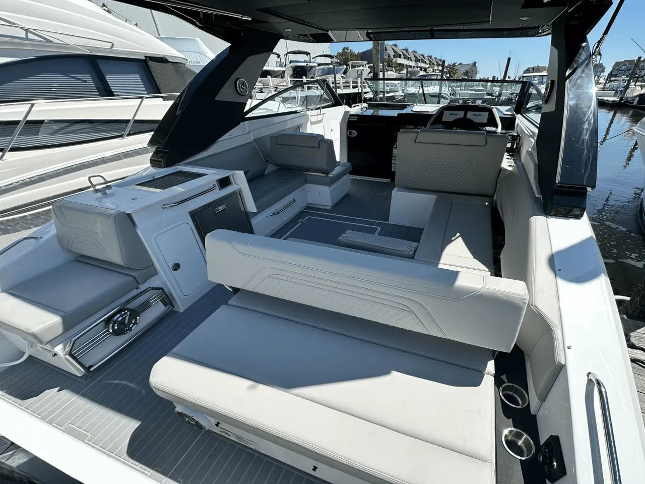The 2025 Cruisers Yachts 34 GLS Outboard comes with a full fuel tank and a Go Boating Gear kit, guaranteeing a hassle-free start to your boating adventures.