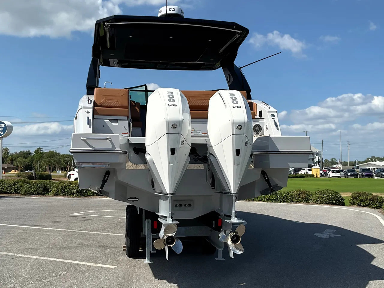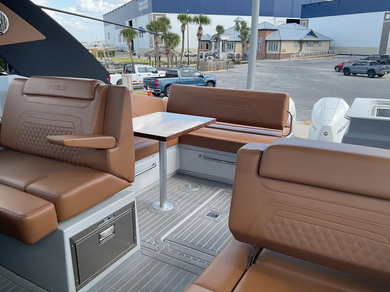 - Premium Propulsion & Control: This 34 GLS is powered by Twin White Mercury 300 HP Verado outboard engines, delivering a combined 600 horsepower for exhilarating speed and robust performance. Coupled with Mercury's Joystick Piloting for Outboards (JPO), docking and close-quarters maneuvering are made incredibly easy and intuitive, offering 360-degree control and features like Skyhook (digital anchoring).