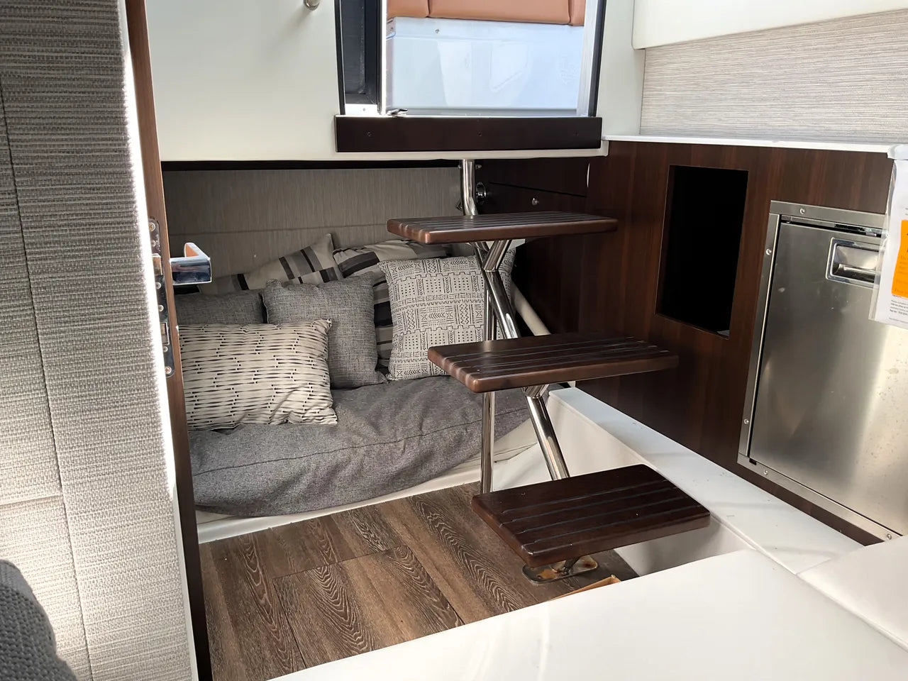 - Refined Cabin: Below deck, a thoughtfully designed cabin offers a comfortable space for a quick escape from the sun or an overnight stay, typically including a berth and a private enclosed head for convenience.
