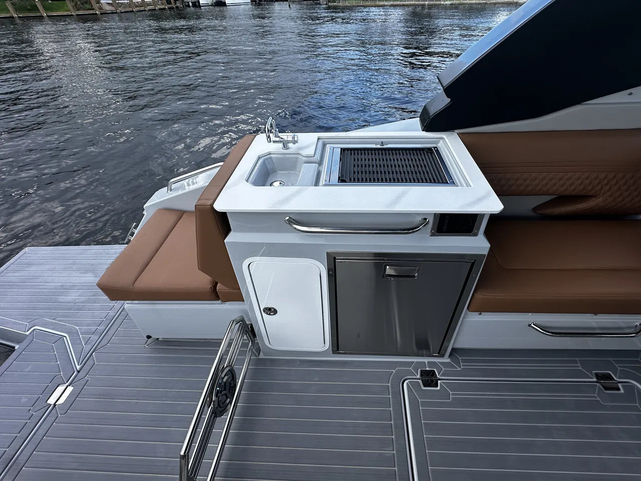 Early arrival 2025 34GLS South Beach Outboard! Perfectly optioned for our South Florida boating market with the powerful Mercury 300 V8 Verados and Joystick Piloting! Diesel generator, Cabin AC, Cockpit Grill and lots more make the 34GLS such a complete vessel! Call MarineMax Pompano today to schedule a showing or water test! Bahamas here we come!