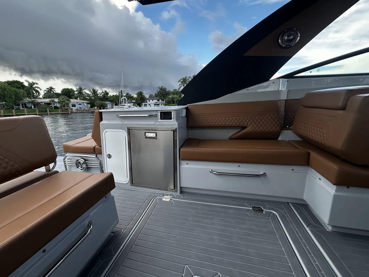 The Cruisers Yachts 34GLS Outboard South Beach edition is a stunning embodiment of modern luxury and high-performance boating. With its sleek design and spacious layout, this 34-foot cruiser offers both style and comfort for discerning enthusiasts. The outboard-powered configuration ensures efficient operation and responsive handling, ideal for navigating various water conditions with ease. Onboard, you'll find meticulously crafted amenities, including a well-appointed cockpit with plush seating, advanced navigation systems, and premium audio equipment for an immersive entertainment experience. Whether cruising along coastal waters or anchoring at your favorite destinations, the 34GLS-OB SB promises a sophisticated blend of functionality and elegance, making every journey a memorable adventure.