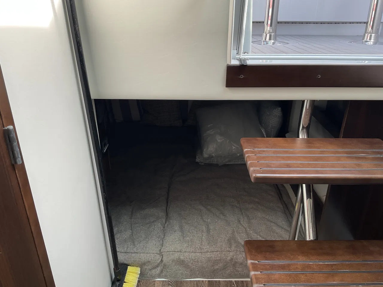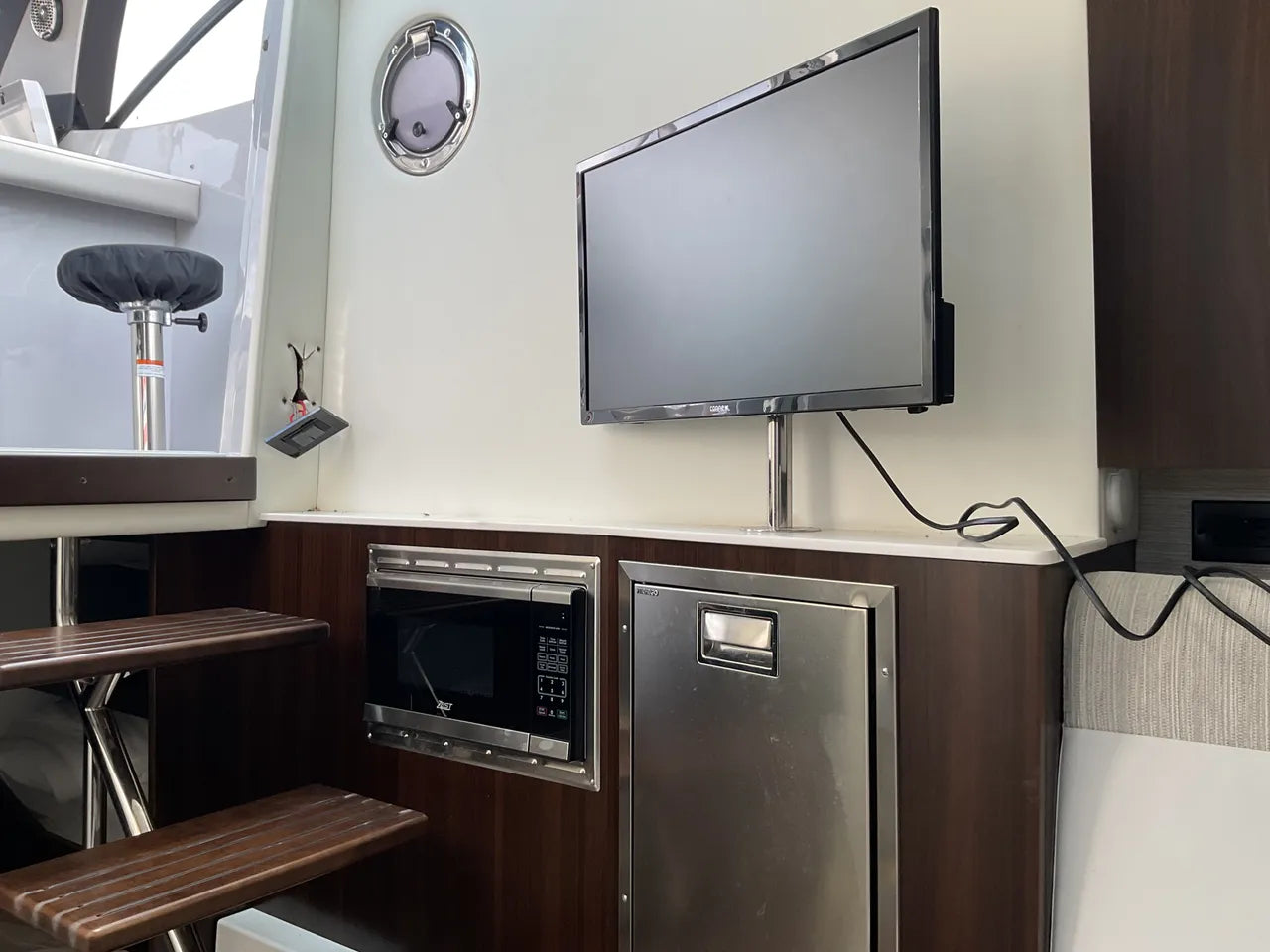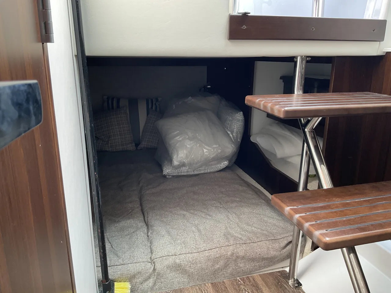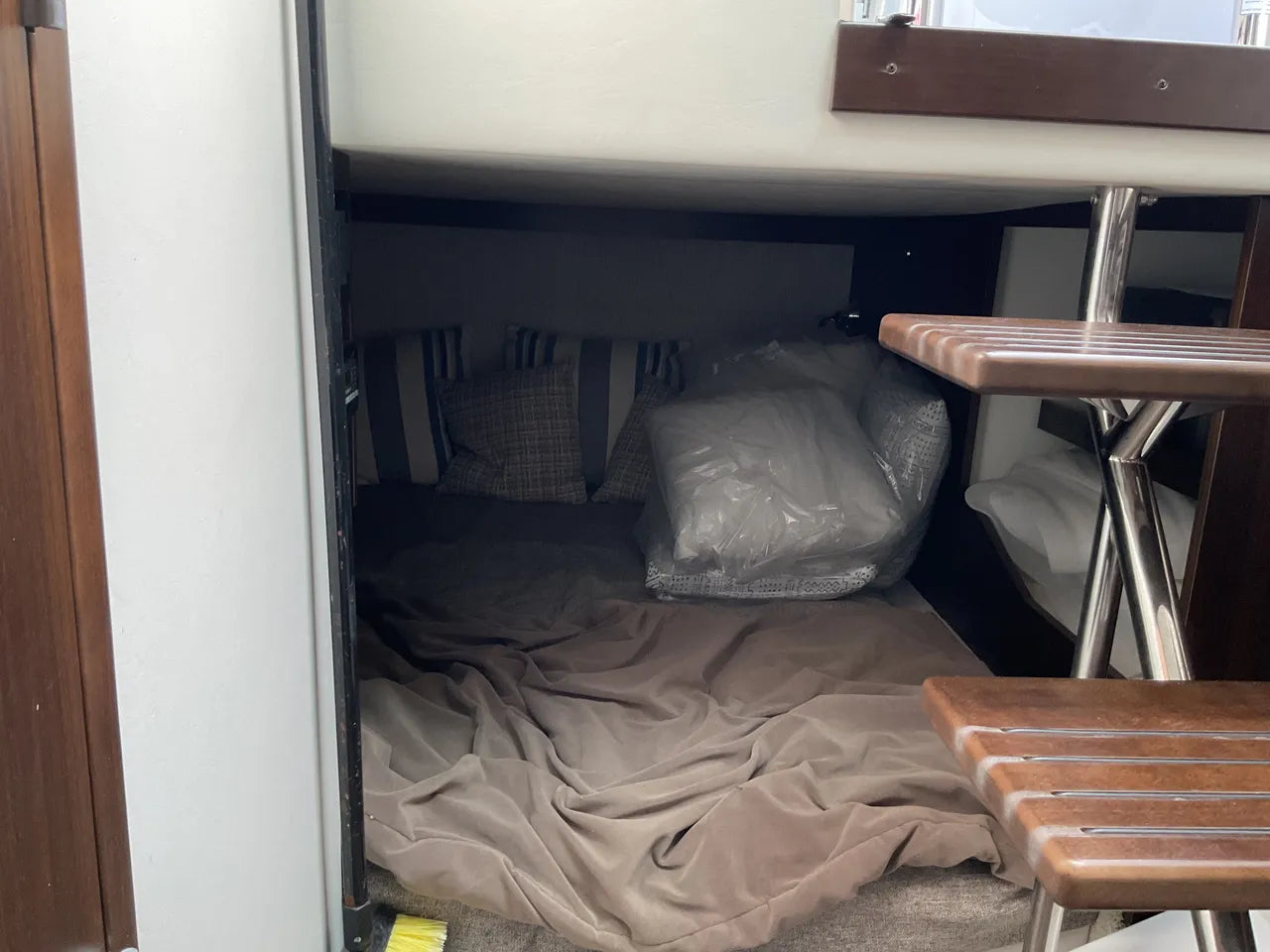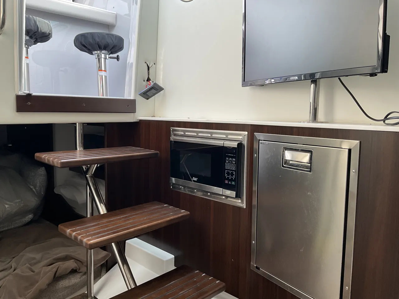- Refined Cabin: Below deck, a beautifully appointed and air-conditioned cabin provides a comfortable retreat with a convertible berth, a private enclosed head with shower, and sophisticated finishes for overnight stays or a break from the sun.