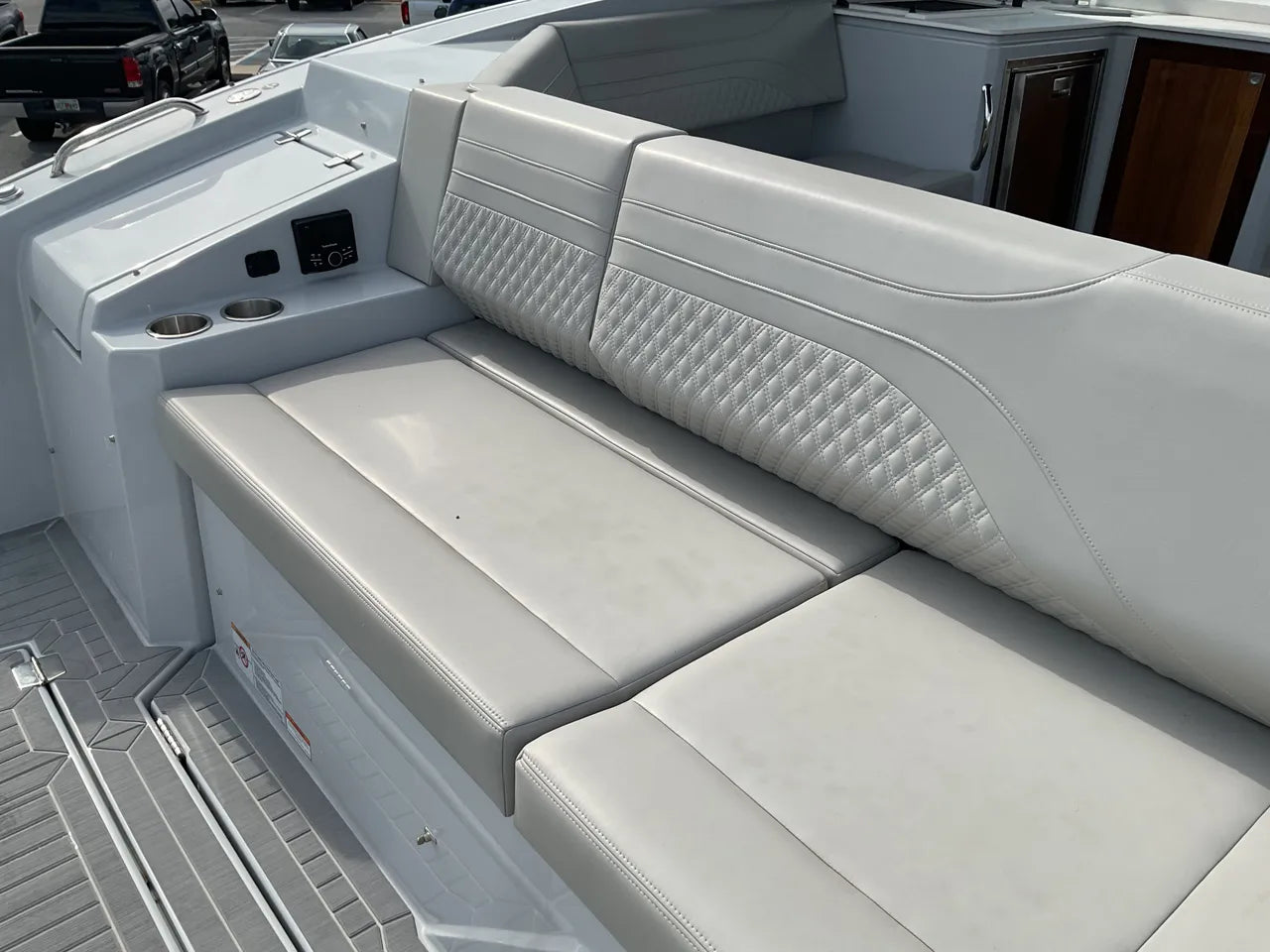 - Luxurious Bow Lounge: A generously sized bow lounge area offers comfortable seating with plush cushions and optional sunshades, perfect for soaking up the sun or enjoying the view.