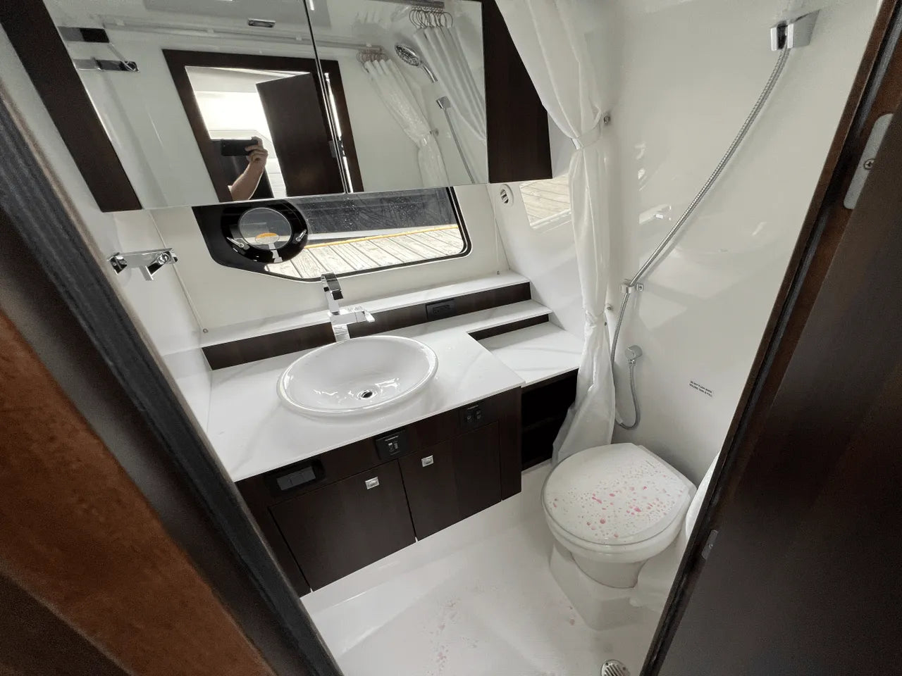 - Refined Cabin: Below deck, a beautifully appointed cabin offers a private retreat with a convertible berth, a full head with a separate shower, and air conditioning. It's the ideal space for a refreshing break or a comfortable overnight stay.