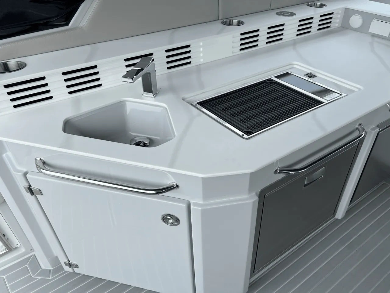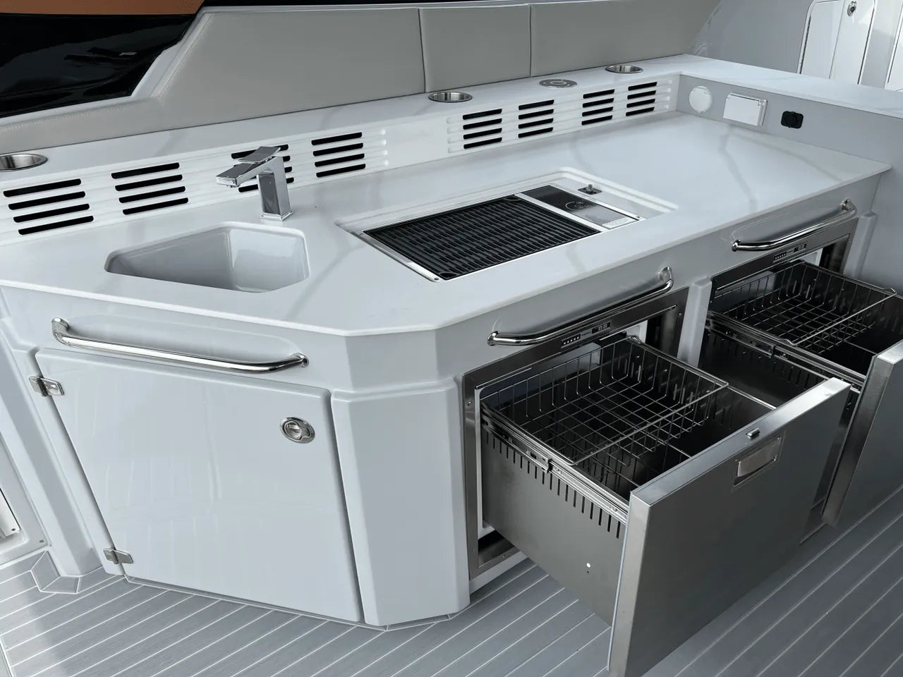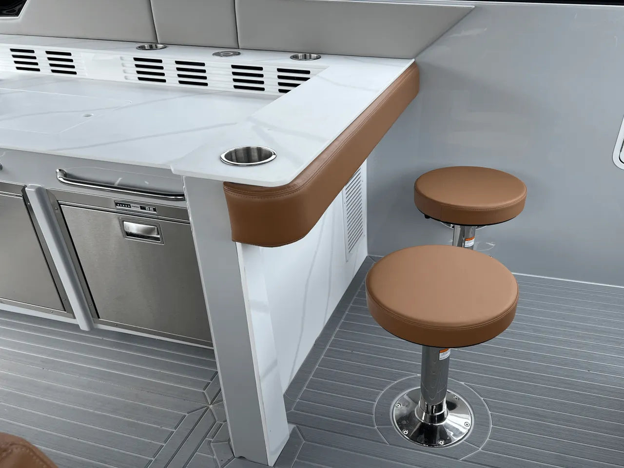 - Gourmet Galley: The cockpit is equipped with a full wet bar, refrigerator, and an electric grill, making it easy to prepare and serve meals without ever leaving the party.