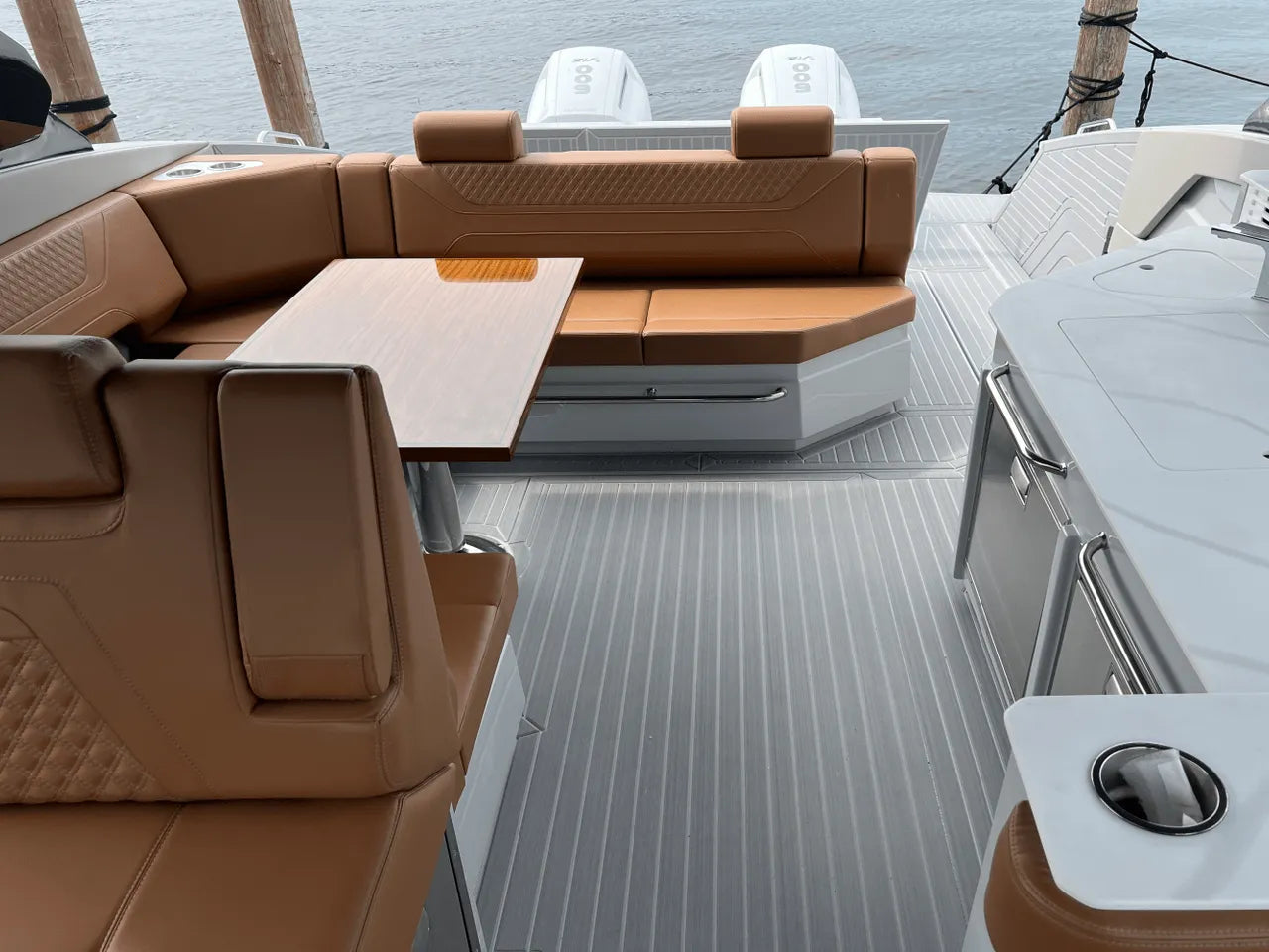 - Expansive Social Zones: The boat's open-concept design includes an expansive bow lounge and a massive aft social zone, both with convertible seating. This versatile layout provides ample space for guests to relax, sunbathe, or dine.