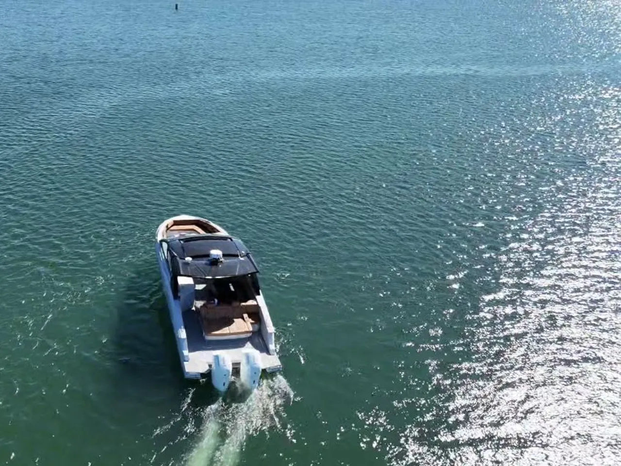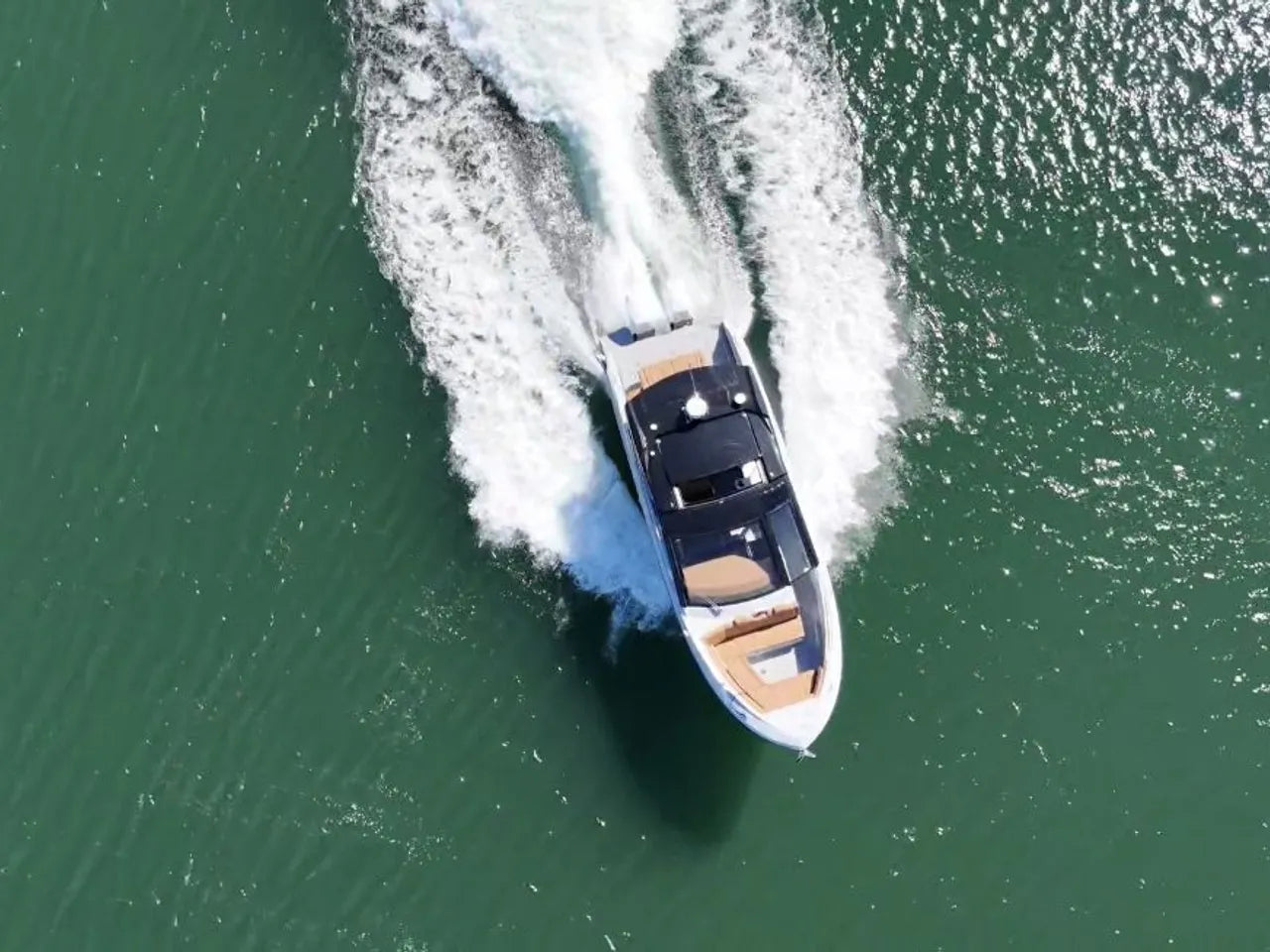 At 42 feet with a commanding 13-foot beam, this yacht delivers spacious entertaining zones, bold South Beach styling, and thrilling outboard performance. Twin Mercury 600V engines with Joystick Piloting offer a combined 1,200 horsepower, providing exhilarating handling and confident control whether cruising the open water or docking with ease.