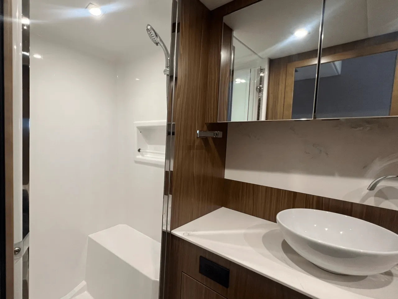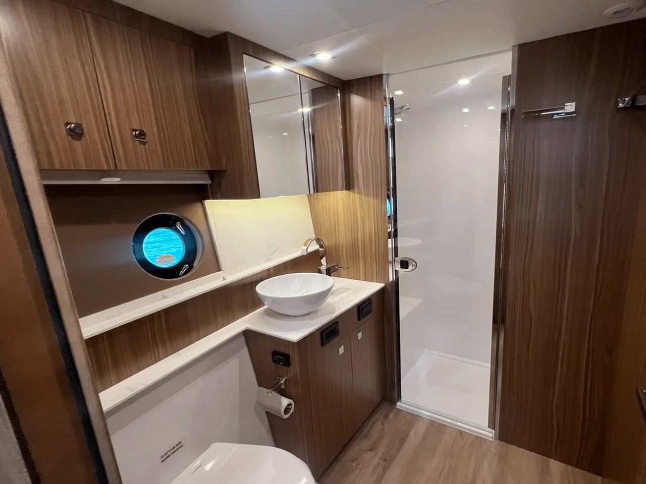 - Luxurious Performance: This exquisite yacht boasts a total engine power of 440HP, derived from its dual VOLVO D6 600 IPS engines, promising a thrilling and smooth sailing experience.