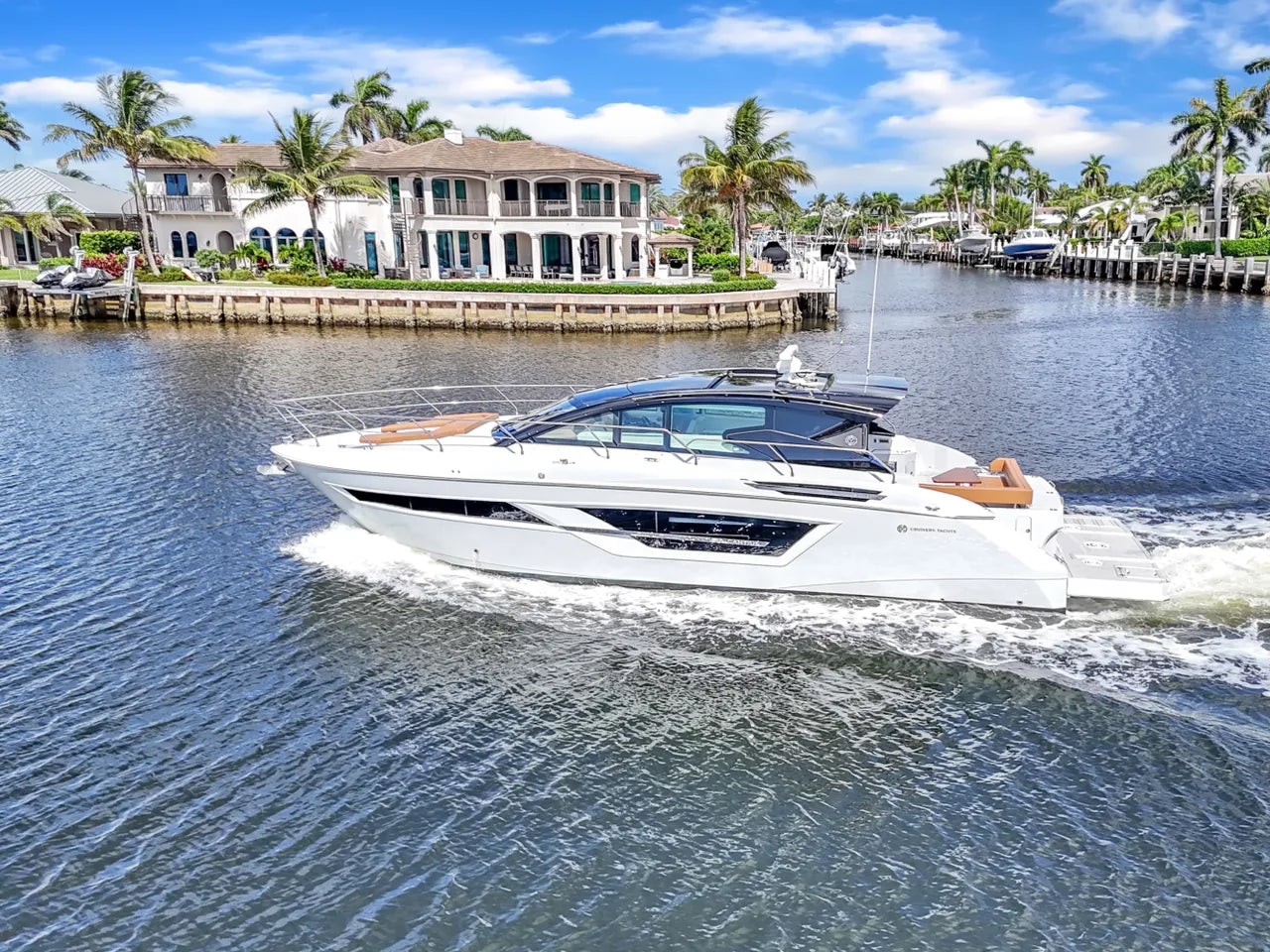 New arrival at MarineMax Pompano! 2025 Cruisers Yachts 46 Cantius in the gorgeous Kingston Gray Hull Color with blacked out Hard Top! Definitely a head turner! Fully loaded with the amazing SeaKeeper Gyro and ready for our Summer Bahamas Cruising Season! Call to set up a showing today!