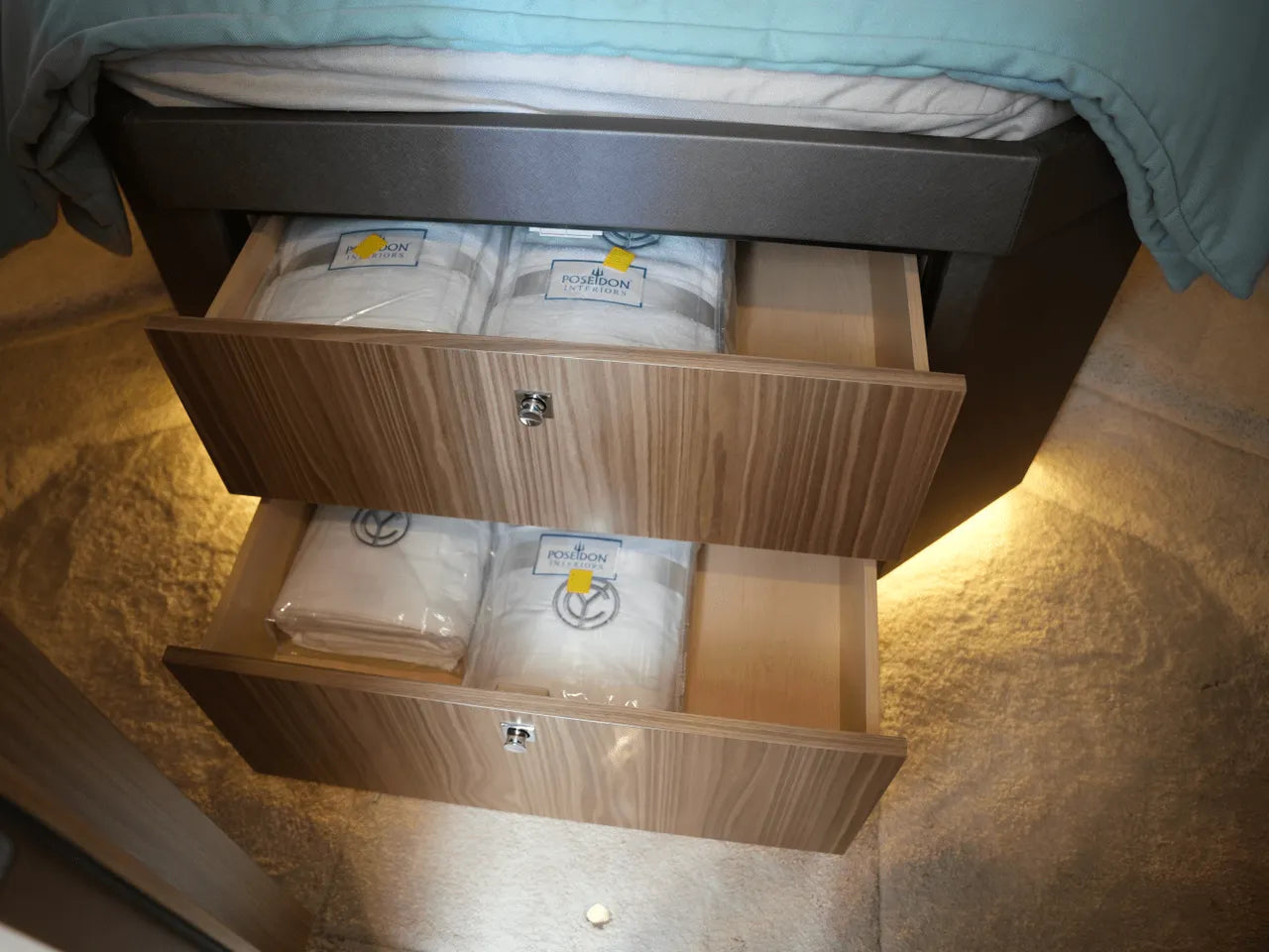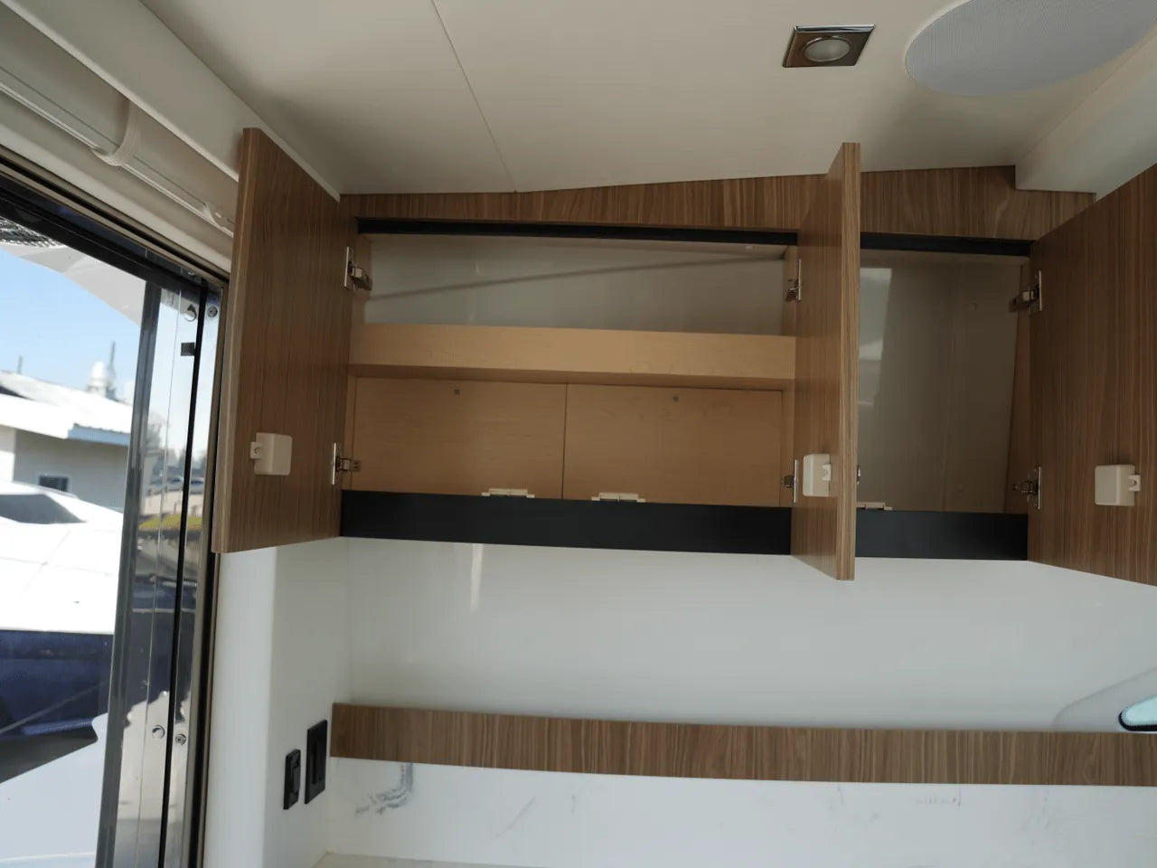 - Light Walnut Interior Wood creates a bright and contemporary ambiance in the cabin.
