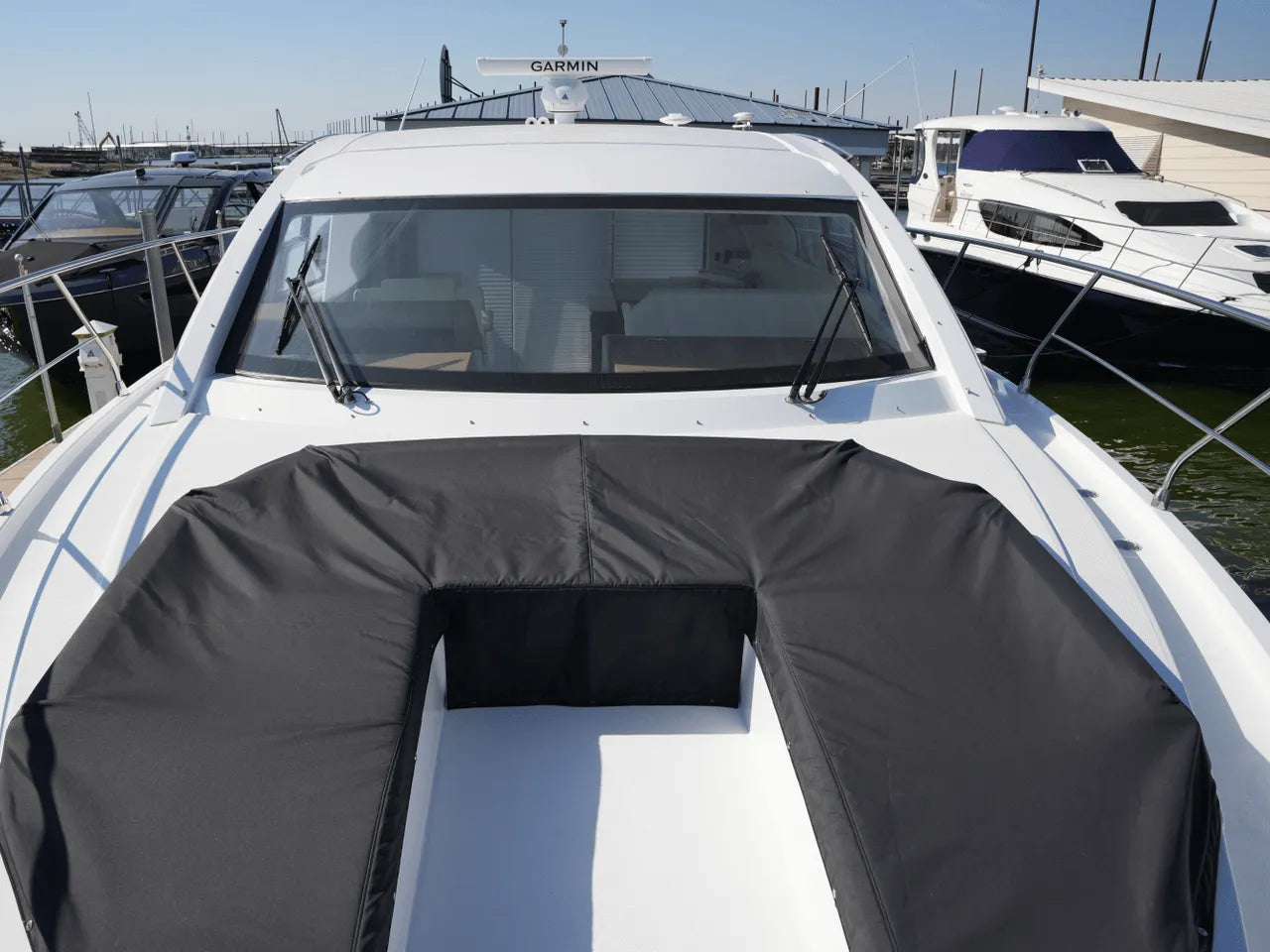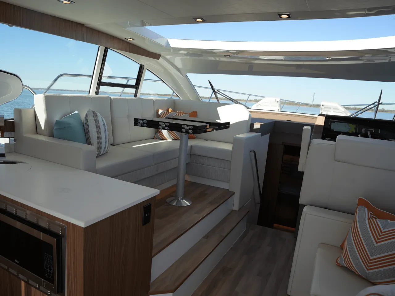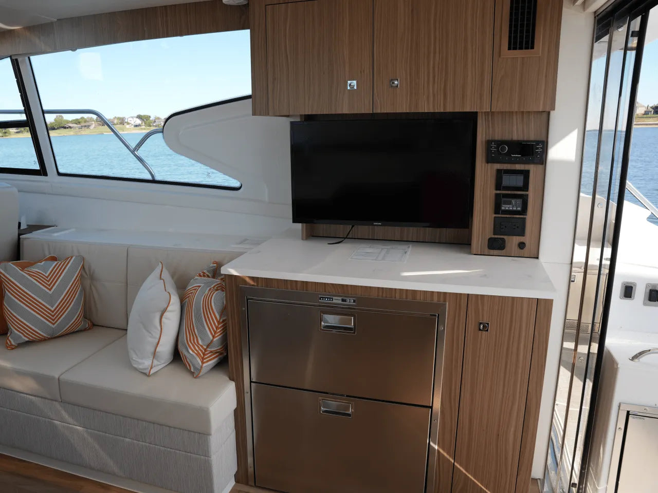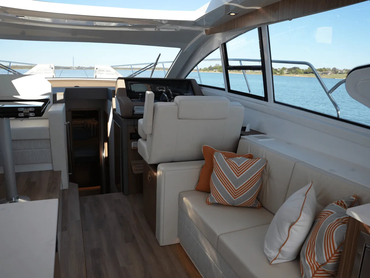 The 2025 Cruisers Yachts 46 Cantius (Stock #206099), available at MarineMax Dallas Yacht Center, is a truly intelligent design, perfectly suited for sophisticated cruising on Lake Lewisville and beyond. This elegant express cruiser is meticulously crafted to offer an exceptional experience, seamlessly blending tranquility with modern amenities and impressive performance.