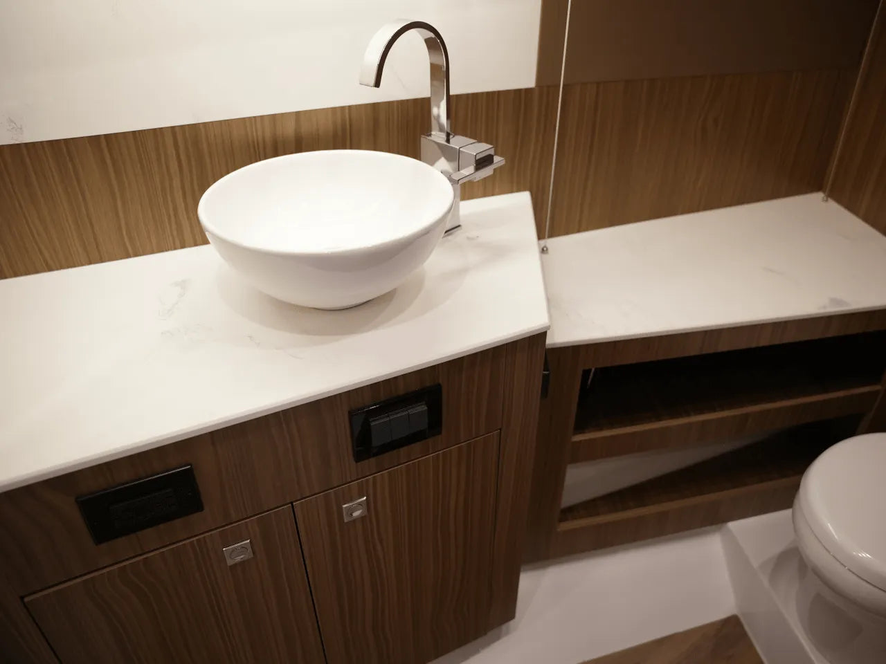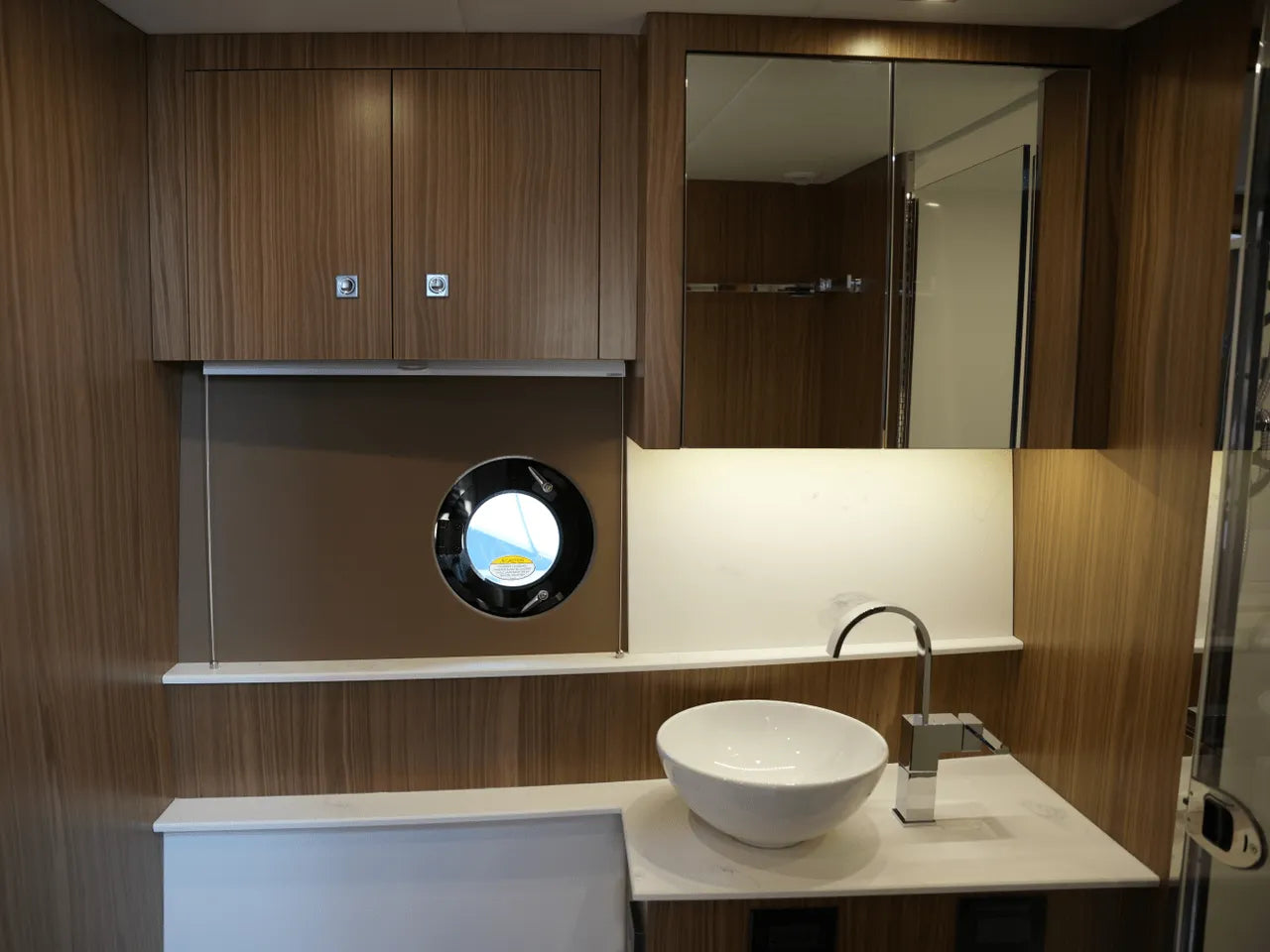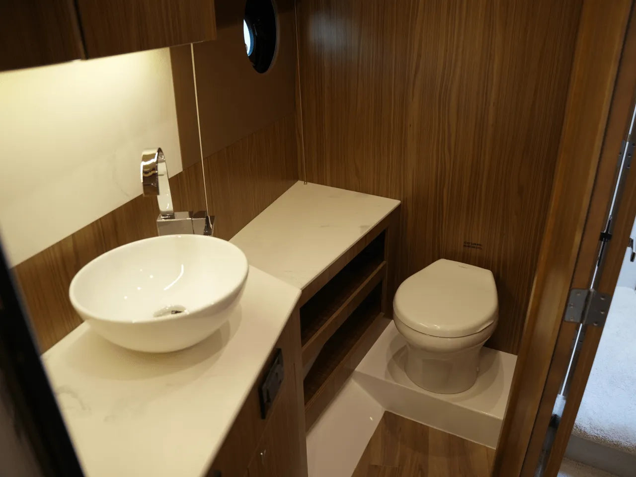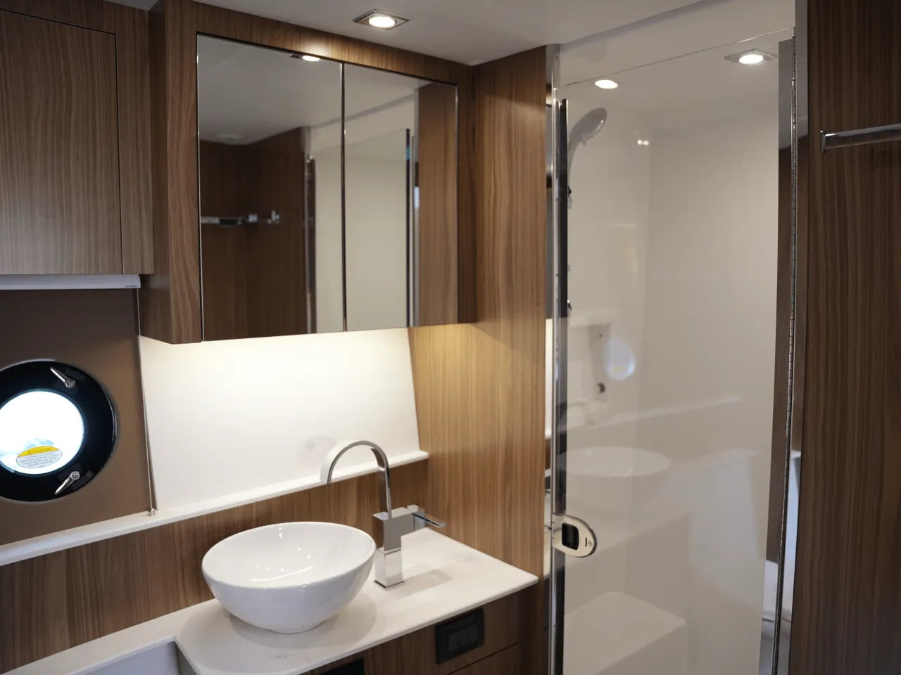 - Equipped with Volvo D6 600 IPS DPS EVC ACP 440 HP engines, offering powerful, efficient performance with joystick control for effortless docking and maneuverability.