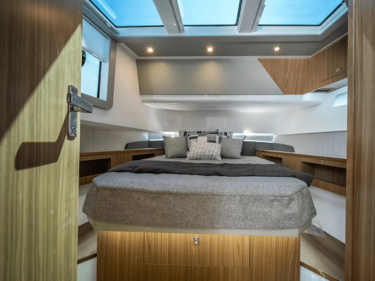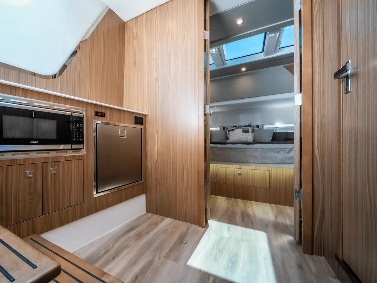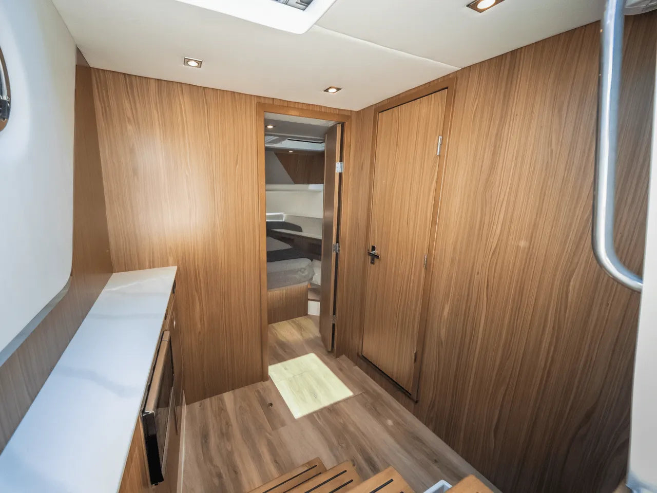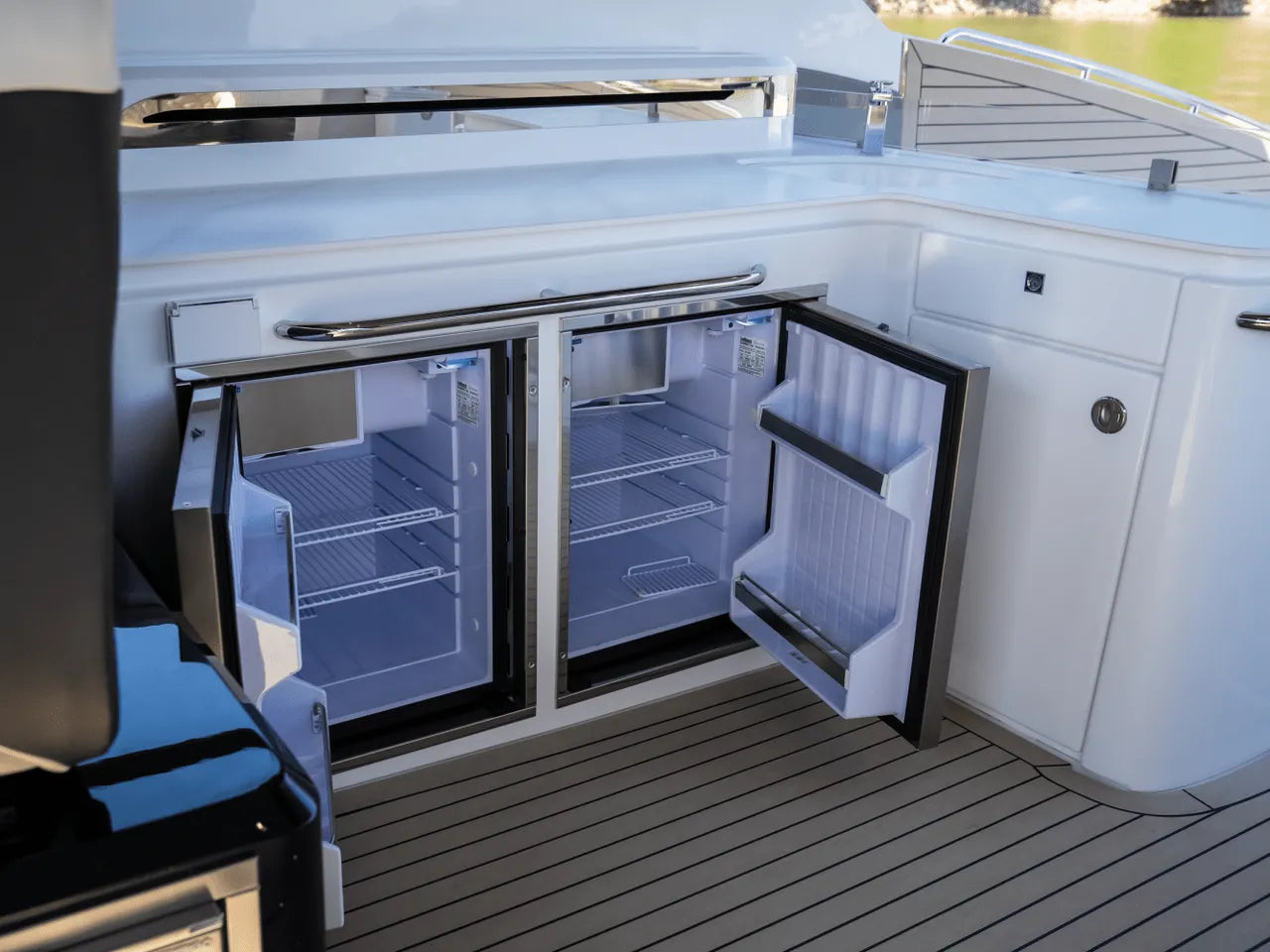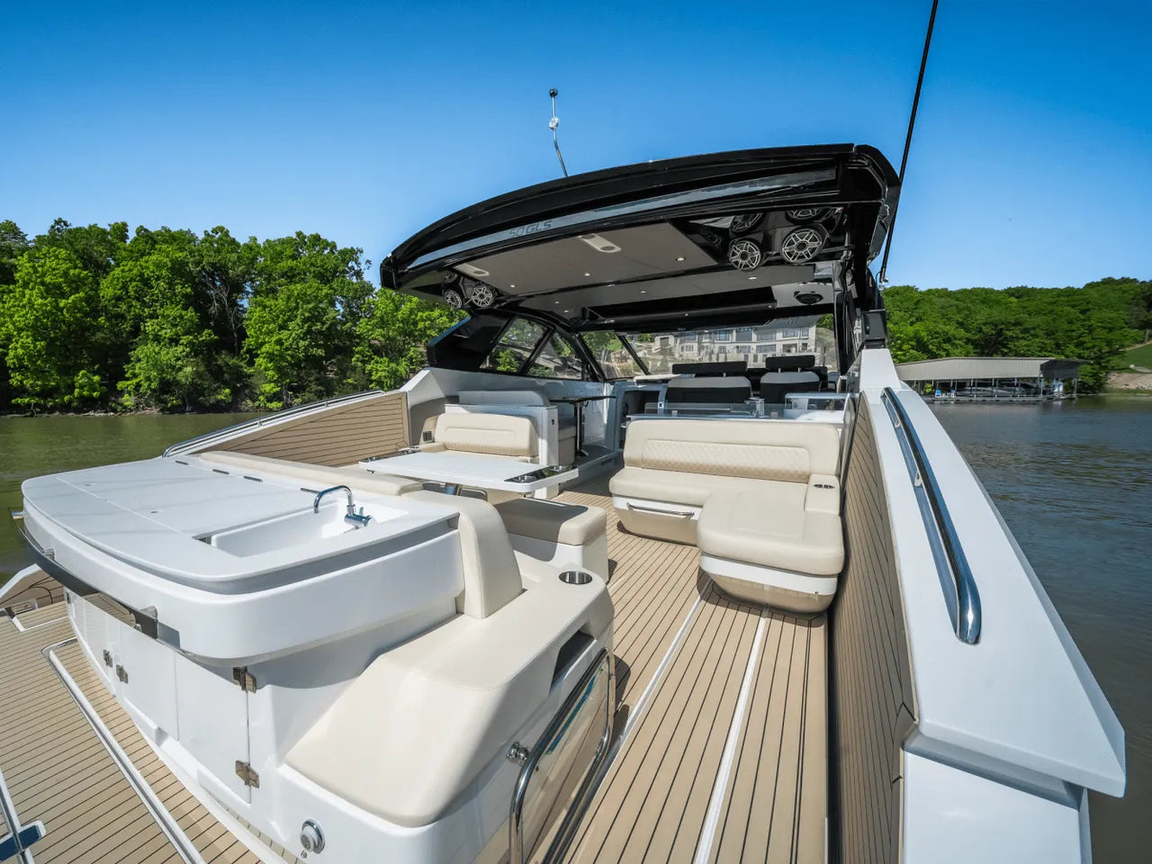 - Dual Beach Doors: A standout feature, these innovative fold-down side sections transform the aft cockpit into an expansive, near-water-level swim platform, greatly extending your entertainment space.