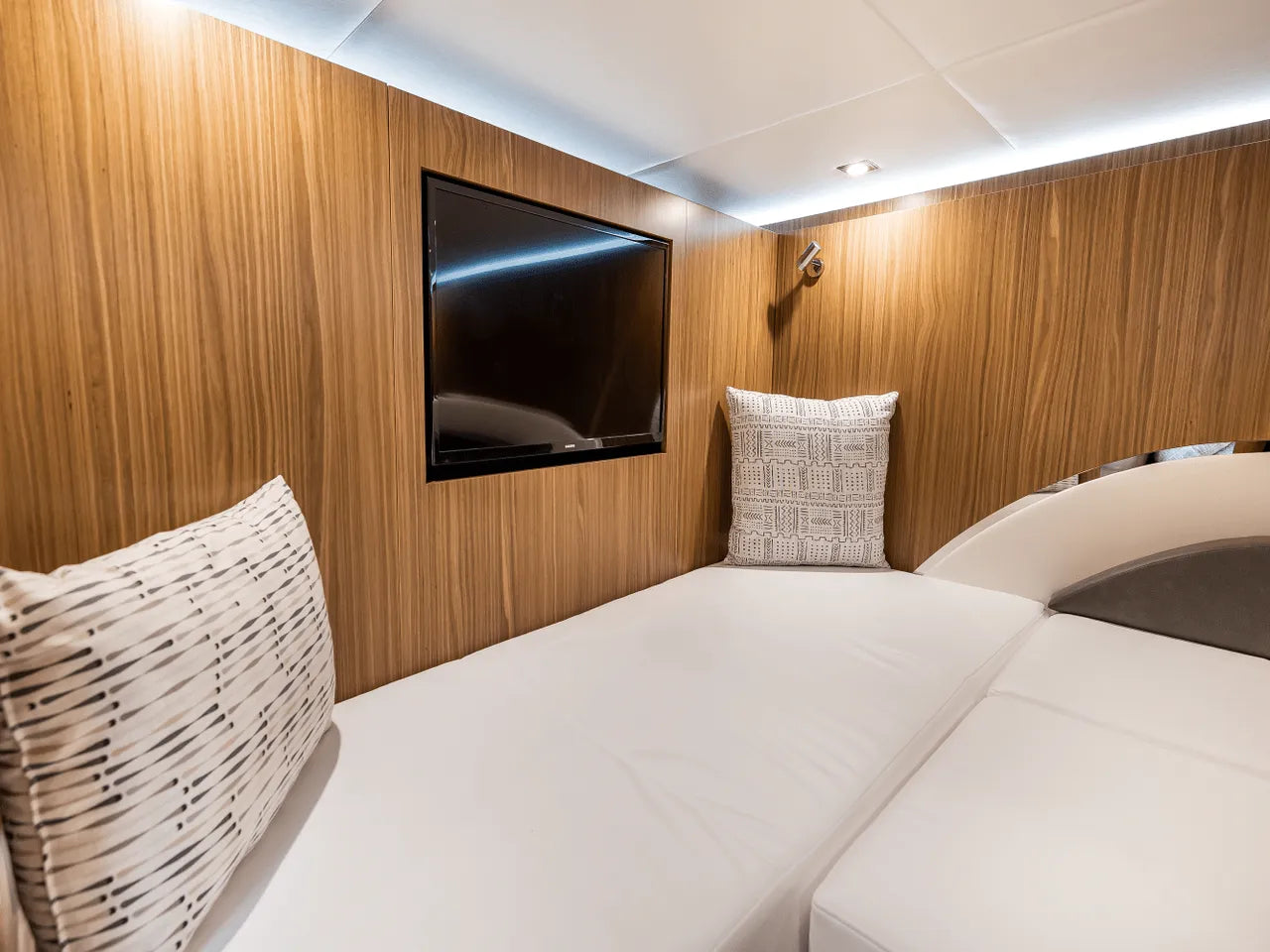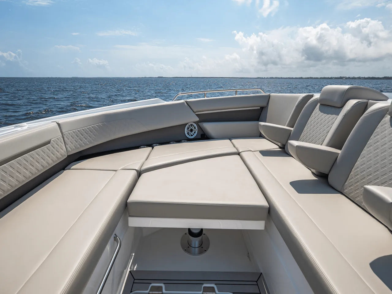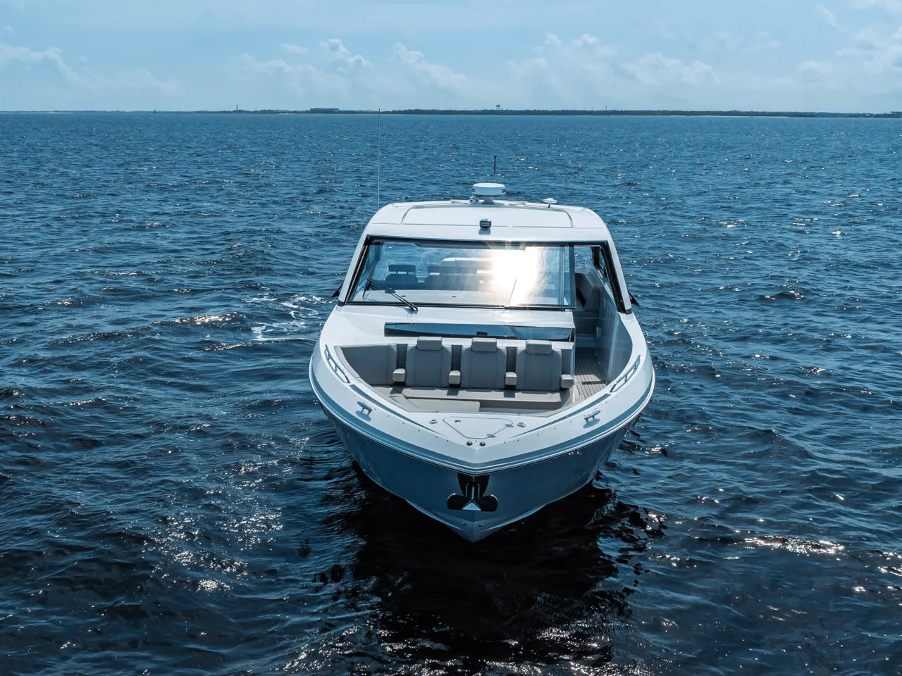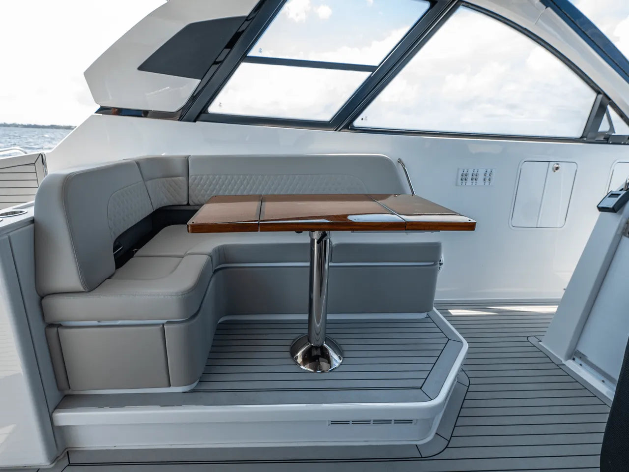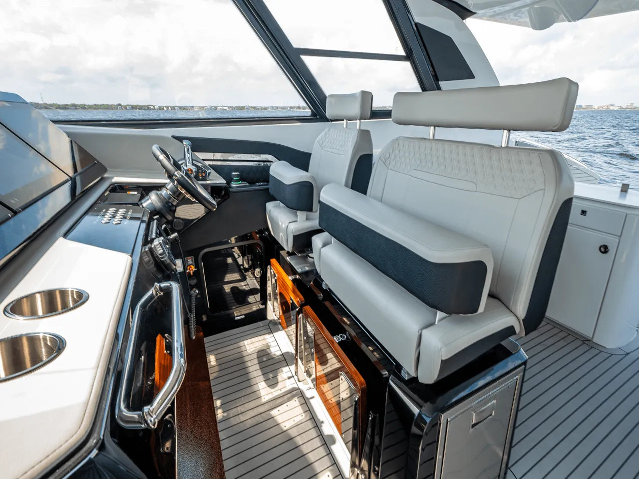 - Luxury & Entertainment: The expansive cockpit is an entertainer's dream, featuring two electric grills, a 55" Cockpit TV, and an additional refrigerator at the wet bar to keep all your refreshments chilled. The 120V Ice Maker at the helm seat ensures you'll never run out of ice.