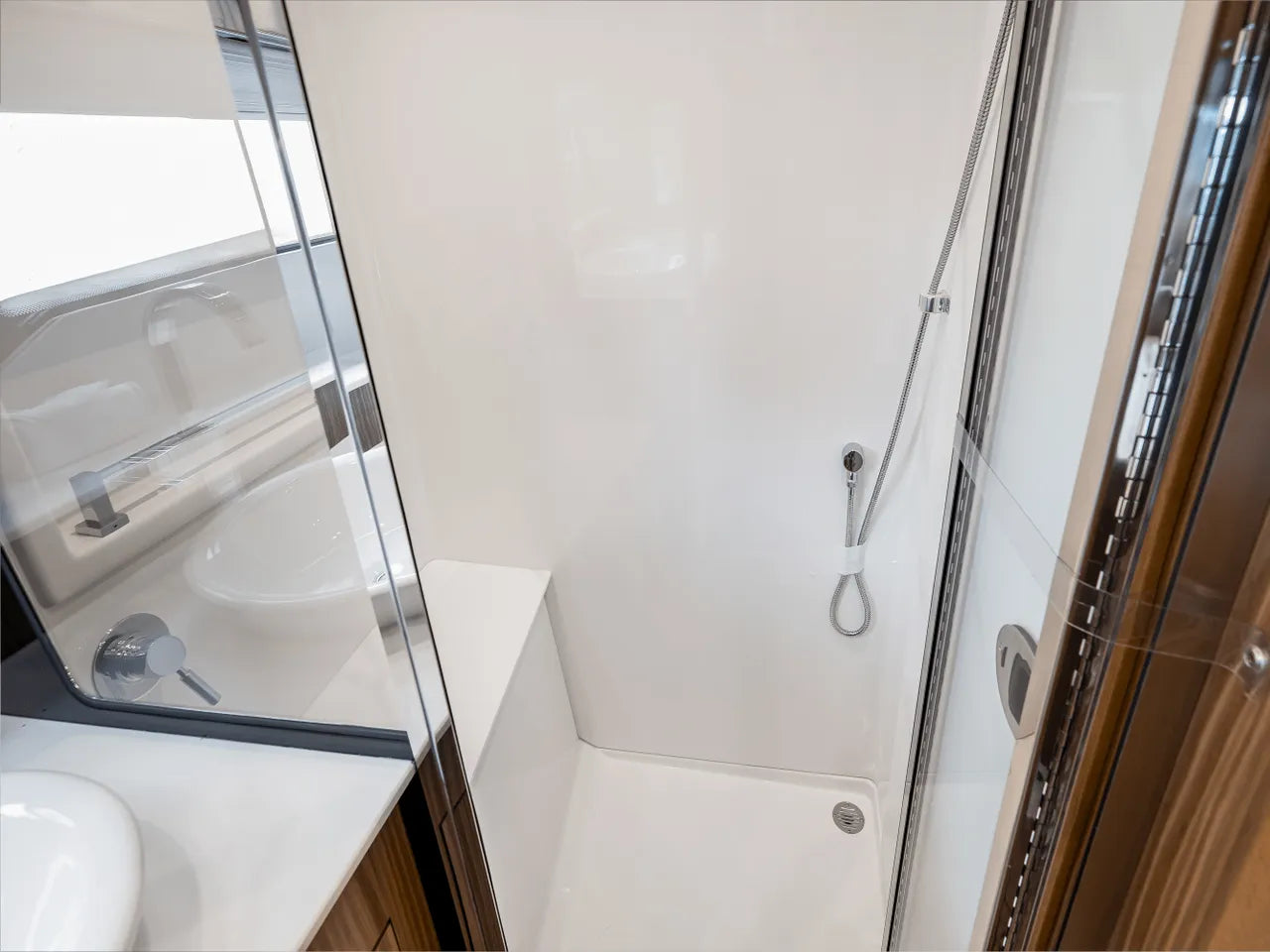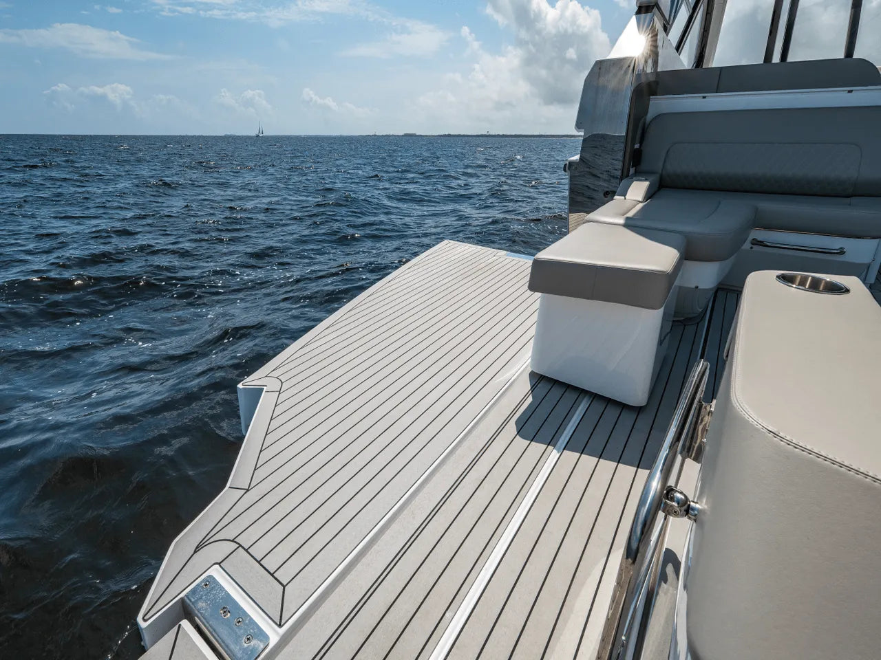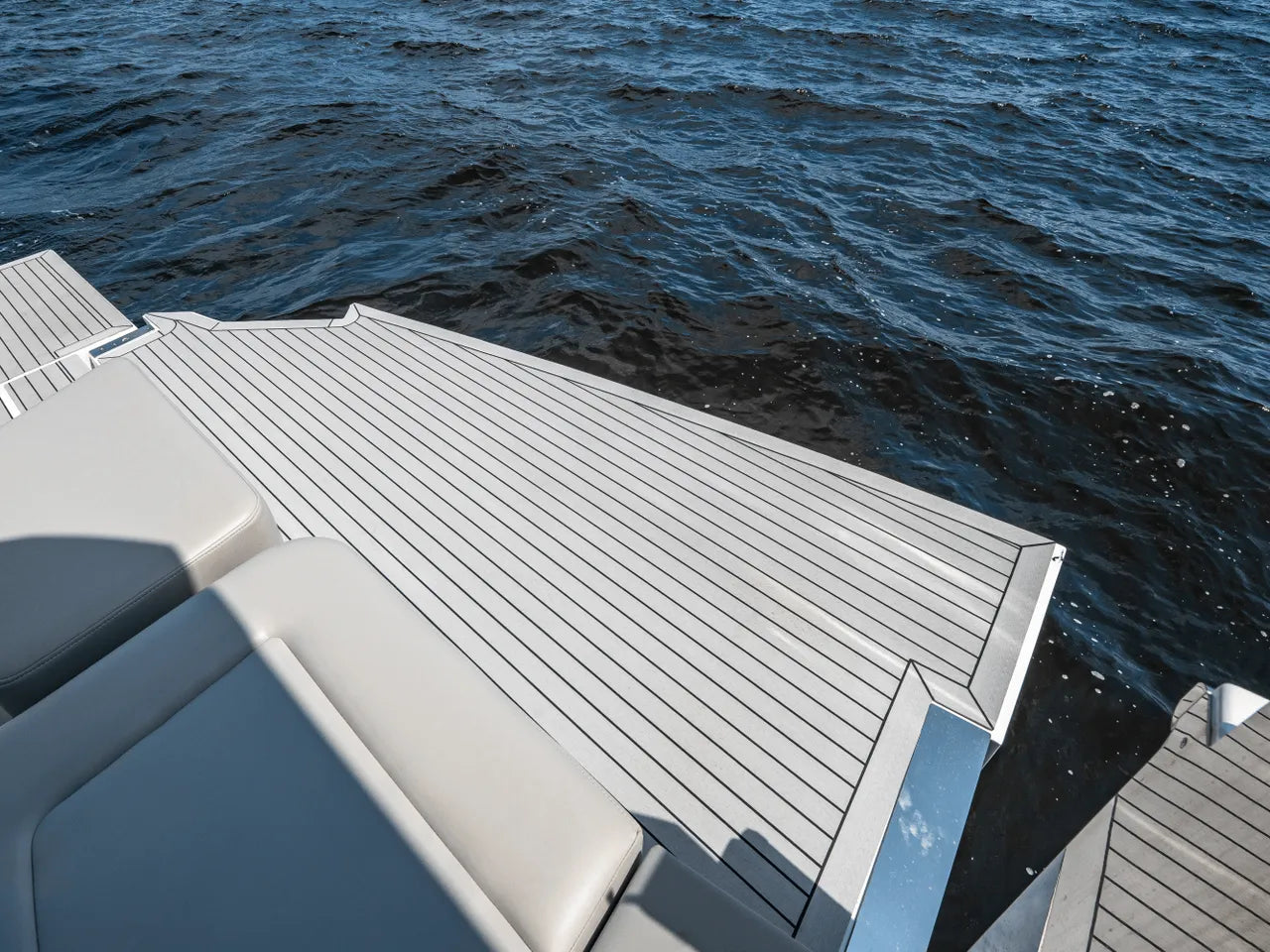 - Premium Design: This vessel features a stylish Hardtop with a Sunroof and White Pillars, providing a modern look while offering plenty of shade. The interior is equally impressive, with high-quality finishes and materials. The Underwater Lights add a touch of ambiance for a stunning effect at night.