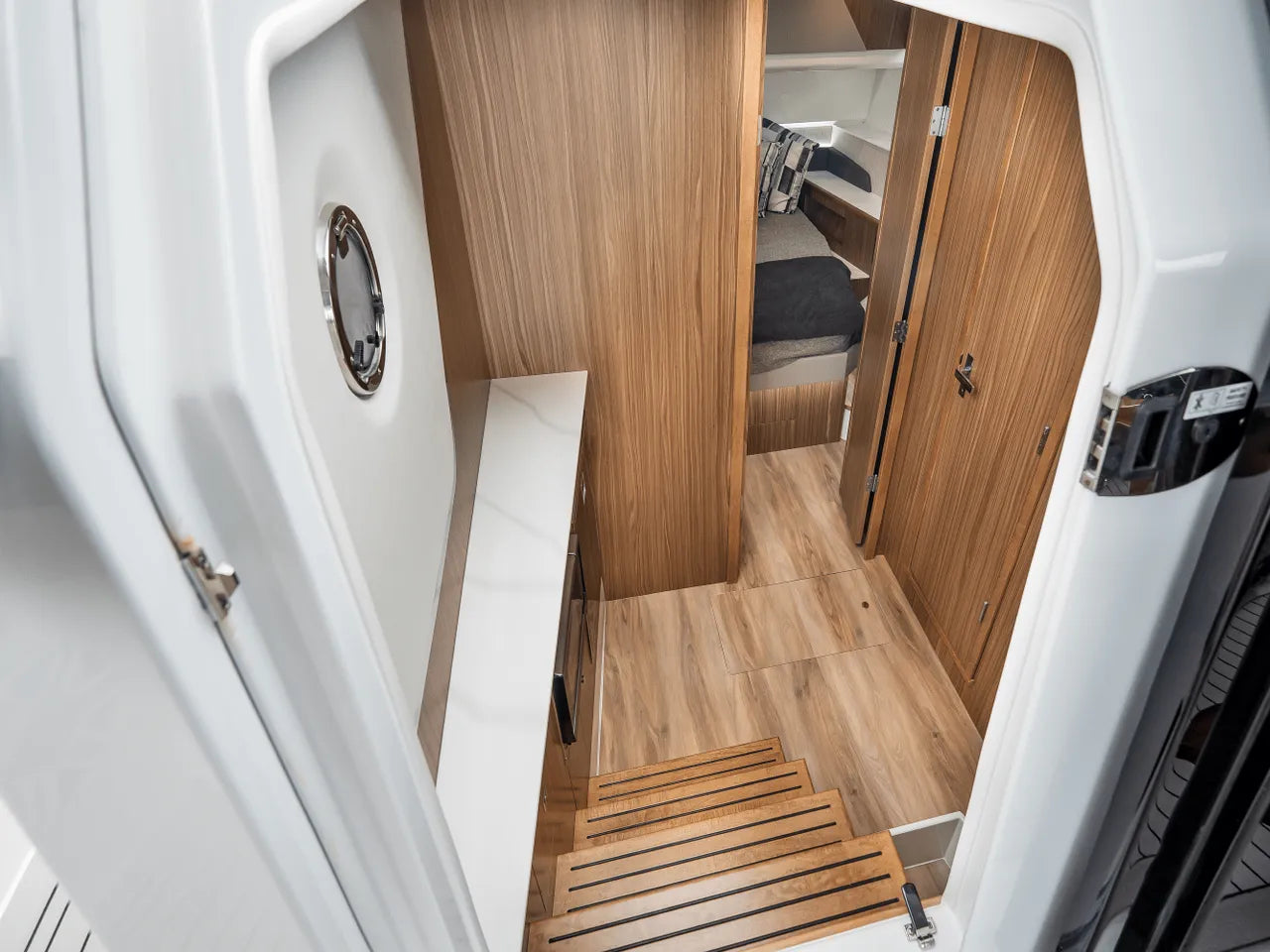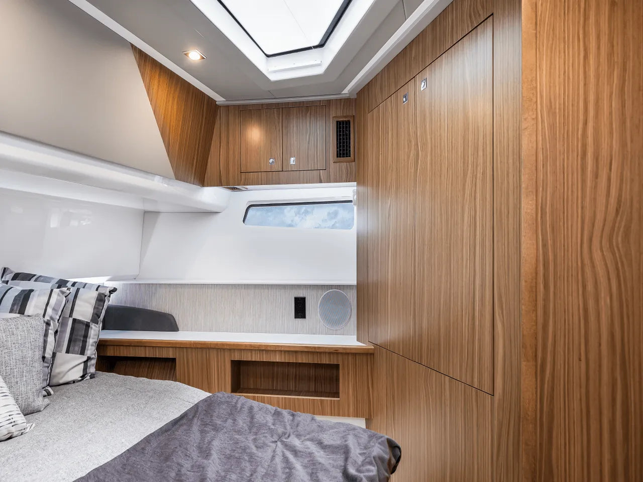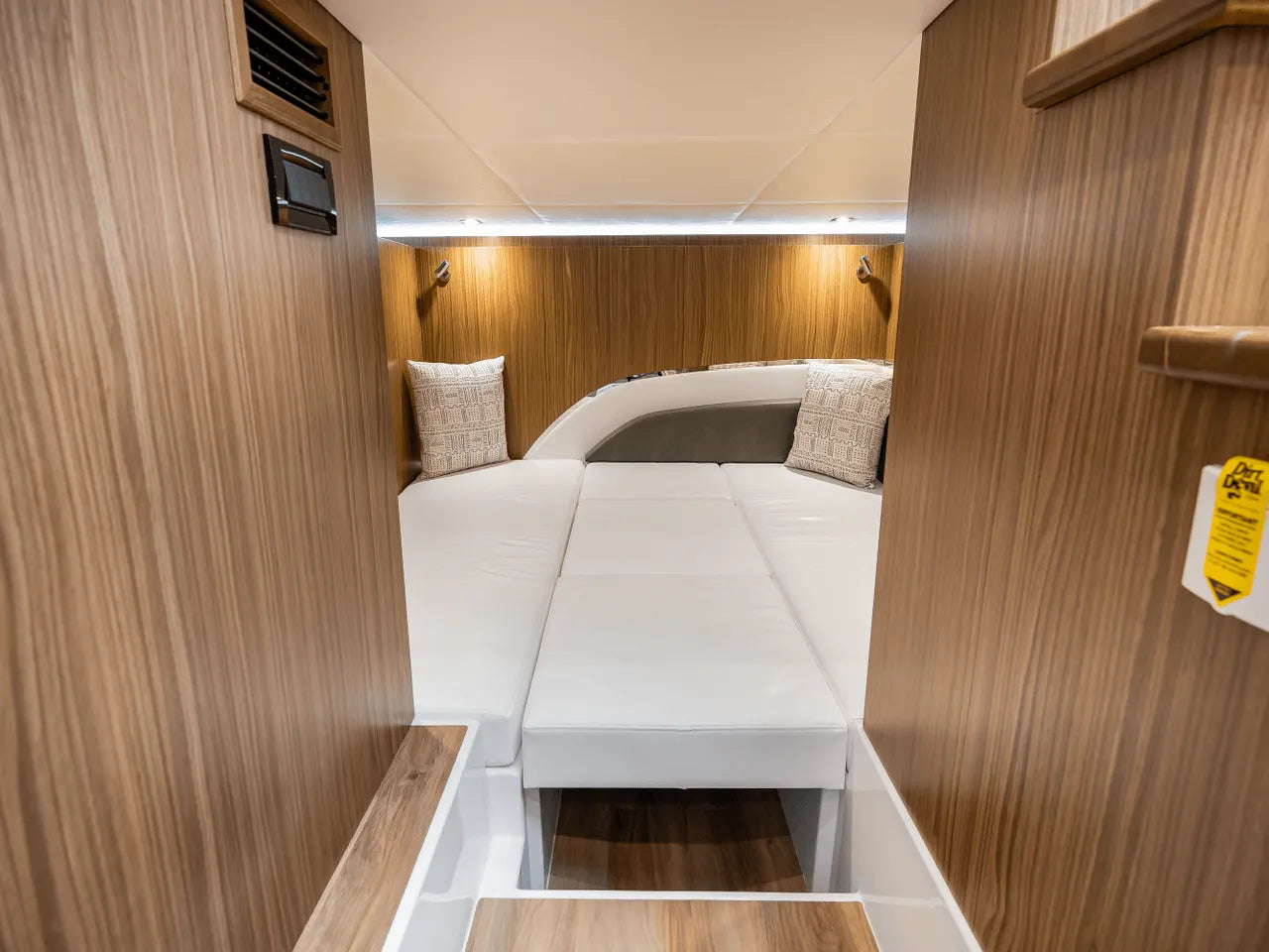 - Premium Design: This vessel features a stylish Hardtop with a Sunroof and White Pillars, providing a modern look while offering plenty of shade. The interior is equally impressive, with high-quality finishes and materials. The Underwater Lights add a touch of ambiance for a stunning effect at night.