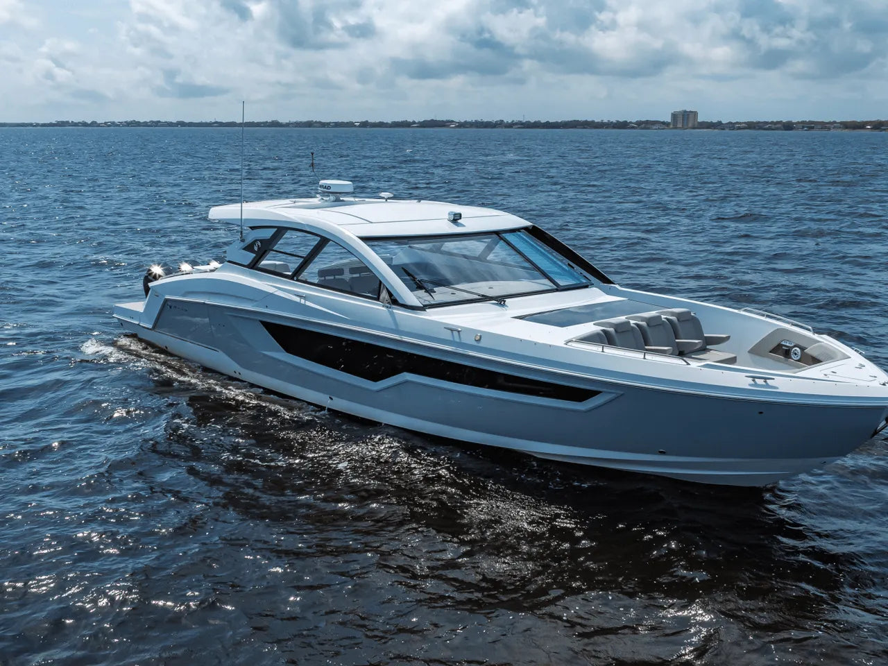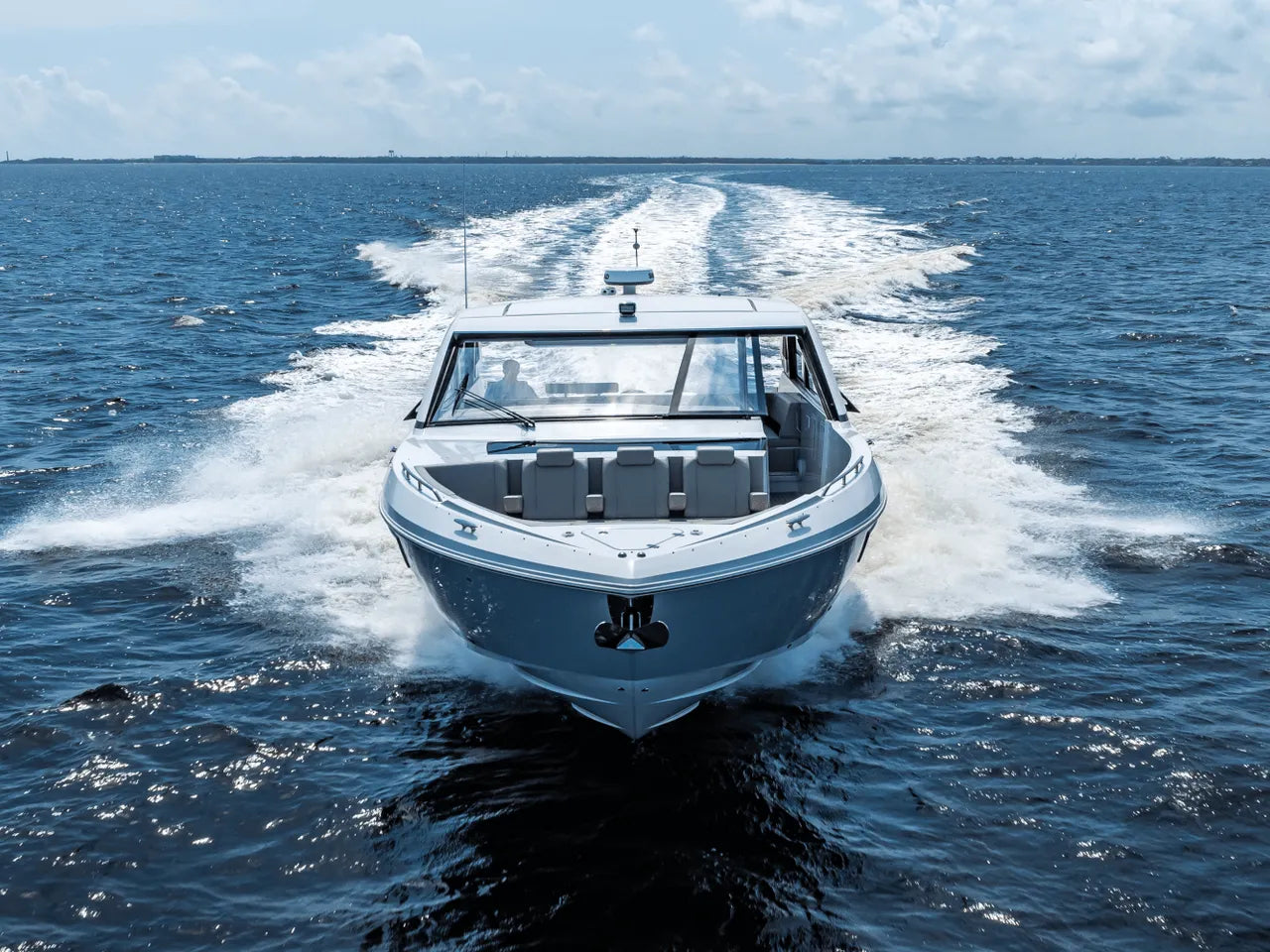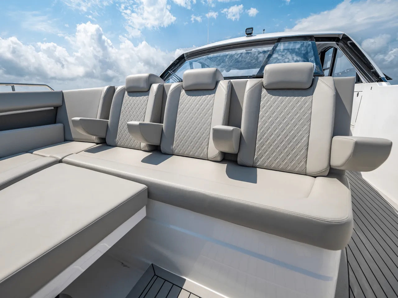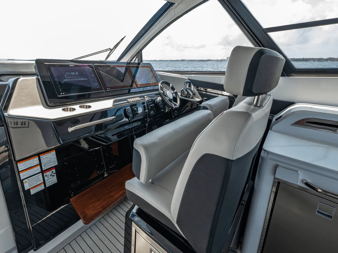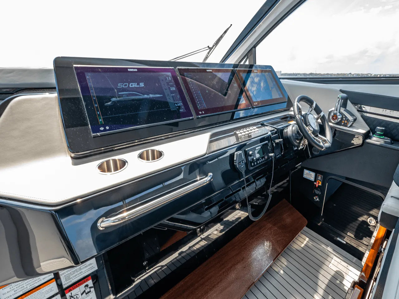 The 50 GLS is the flagship in the GLS series, celebrated for its innovative design, including dual "beach doors" that electronically fold down to expand the cockpit, creating a massive swim platform and direct water access.