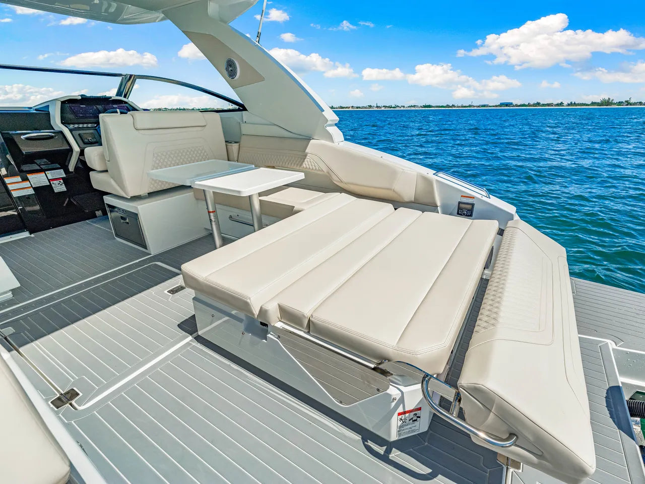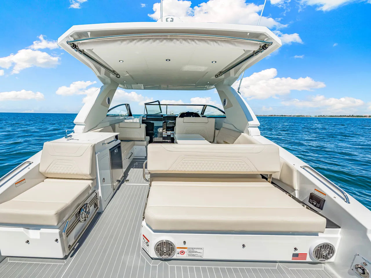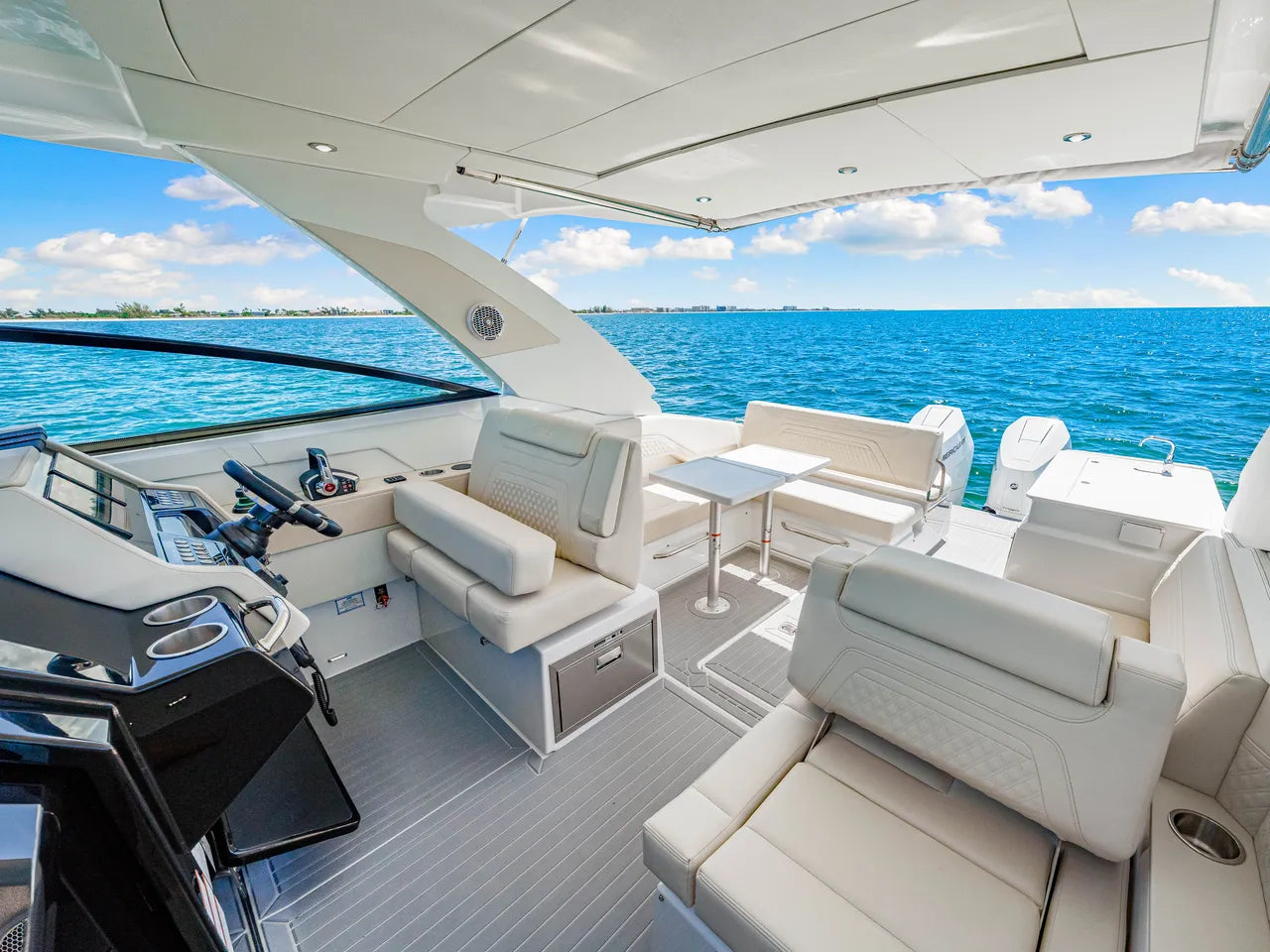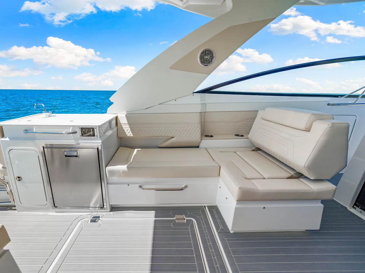 Every inch of this luxury boat reflects meticulous craftsmanship, combining elegant design with functional features. Plush seating, a fully equipped galley, and a stylish cockpit create the perfect environment for relaxation and entertainment.
