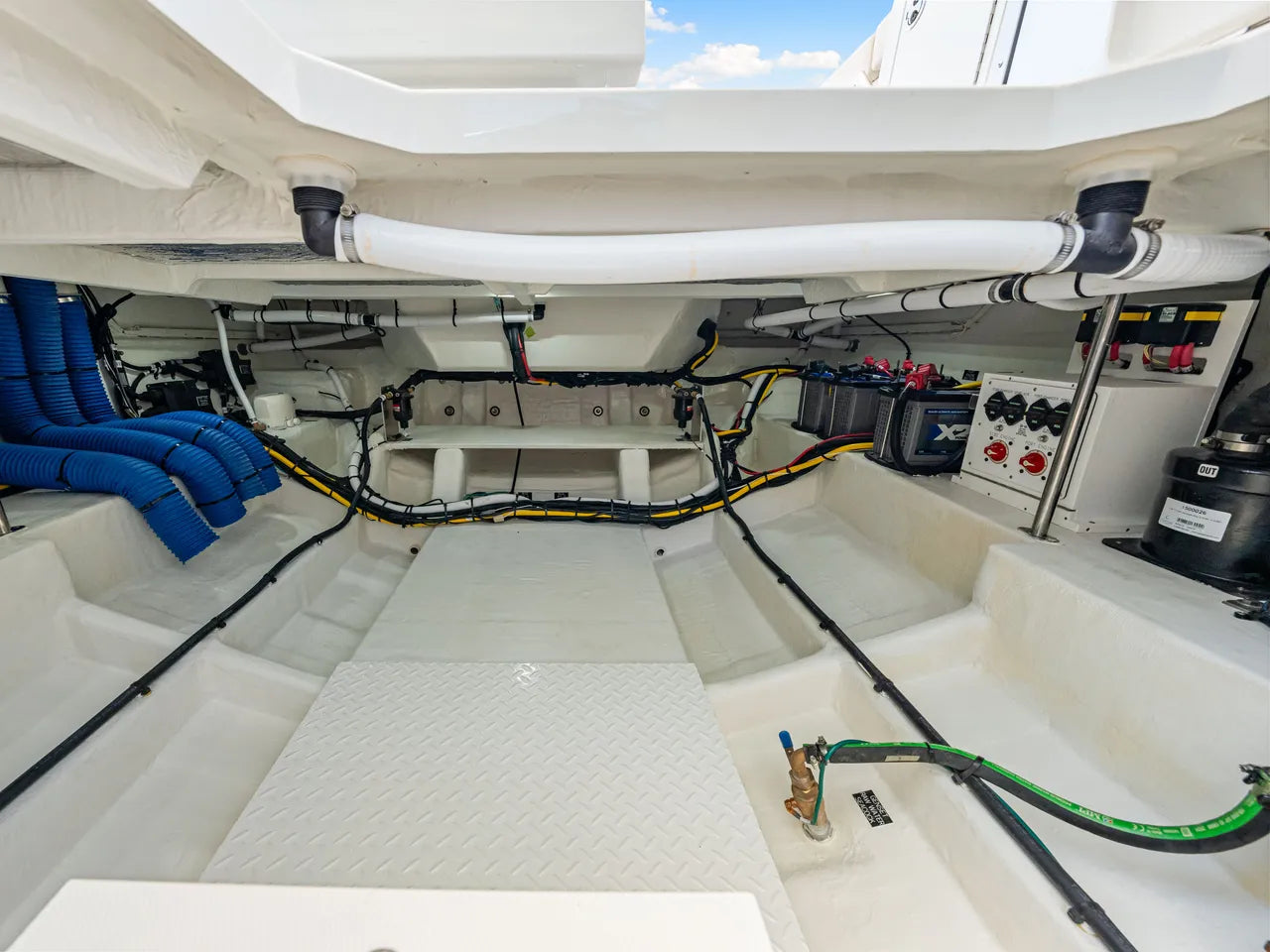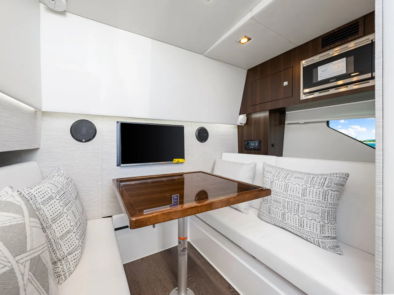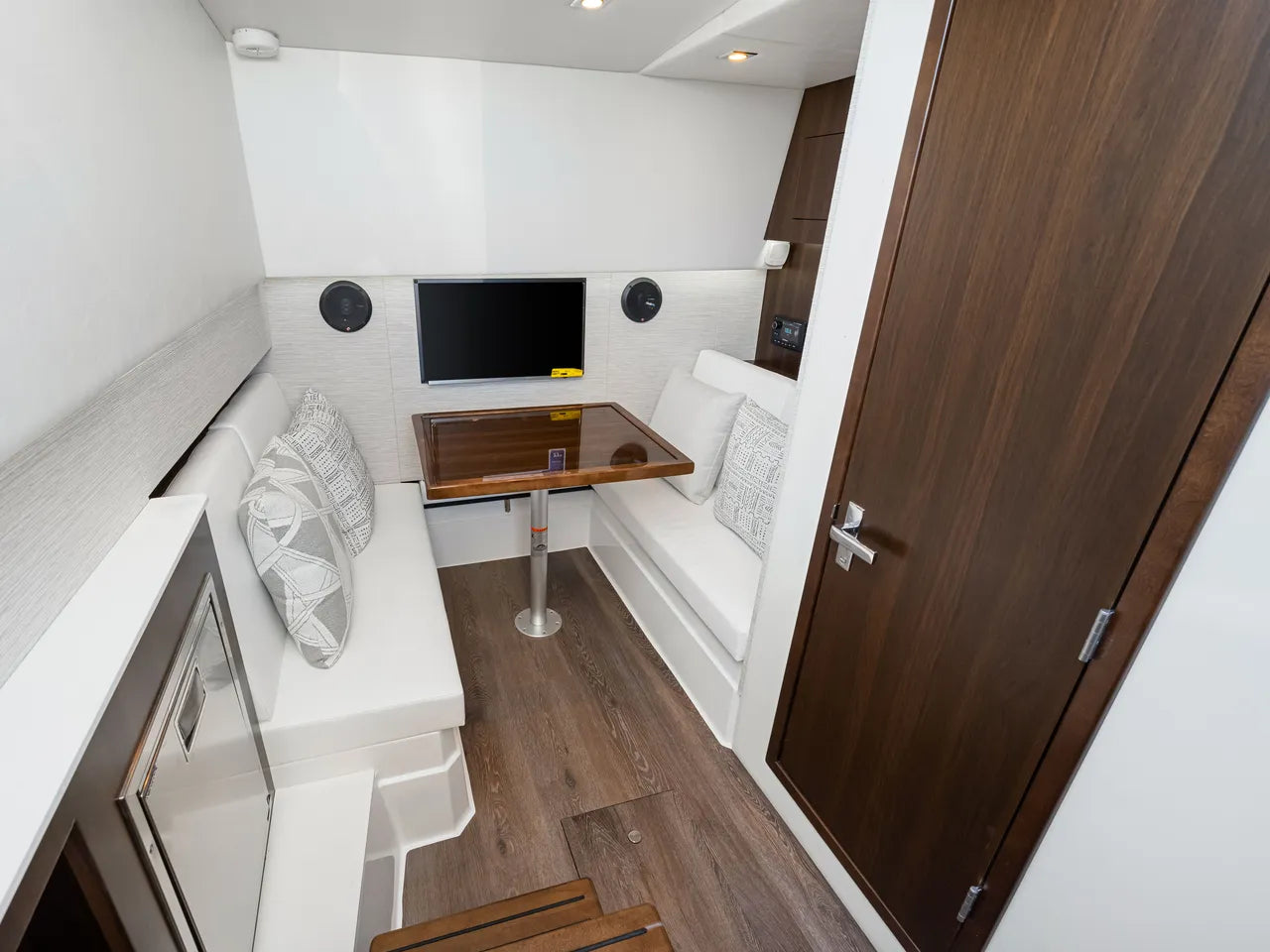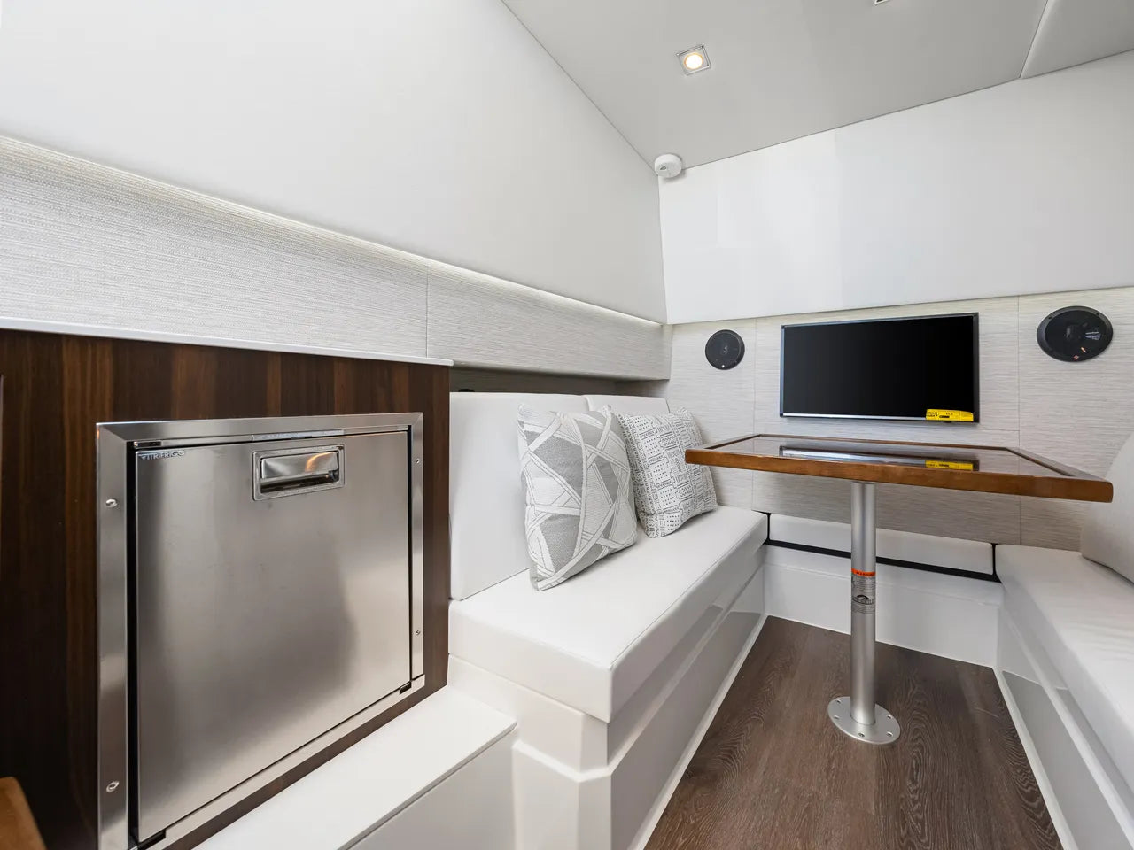 Every inch of this luxury boat reflects meticulous craftsmanship, combining elegant design with functional features. Plush seating, a fully equipped galley, and a stylish cockpit create the perfect environment for relaxation and entertainment.