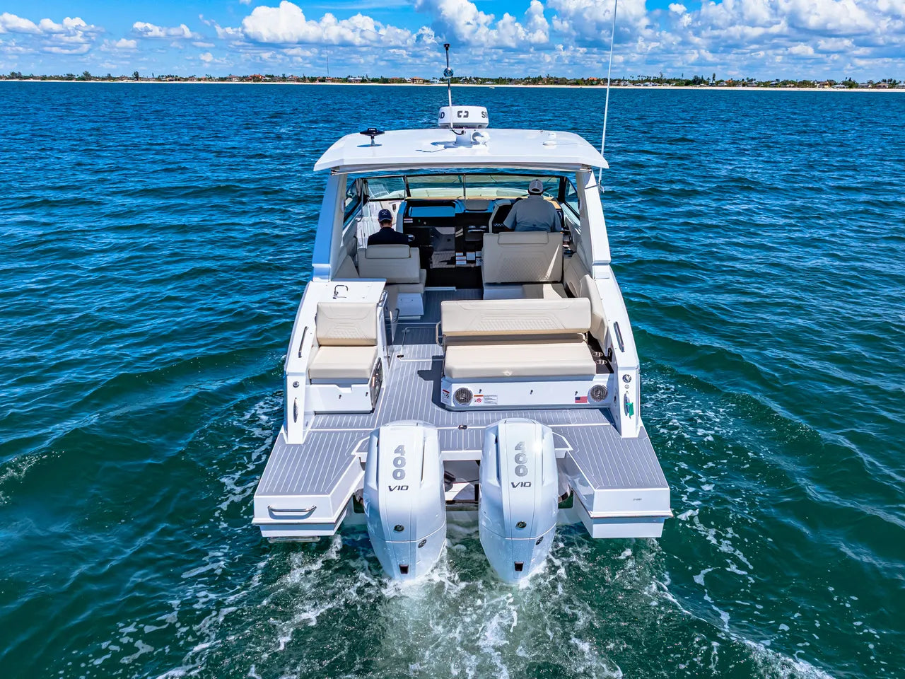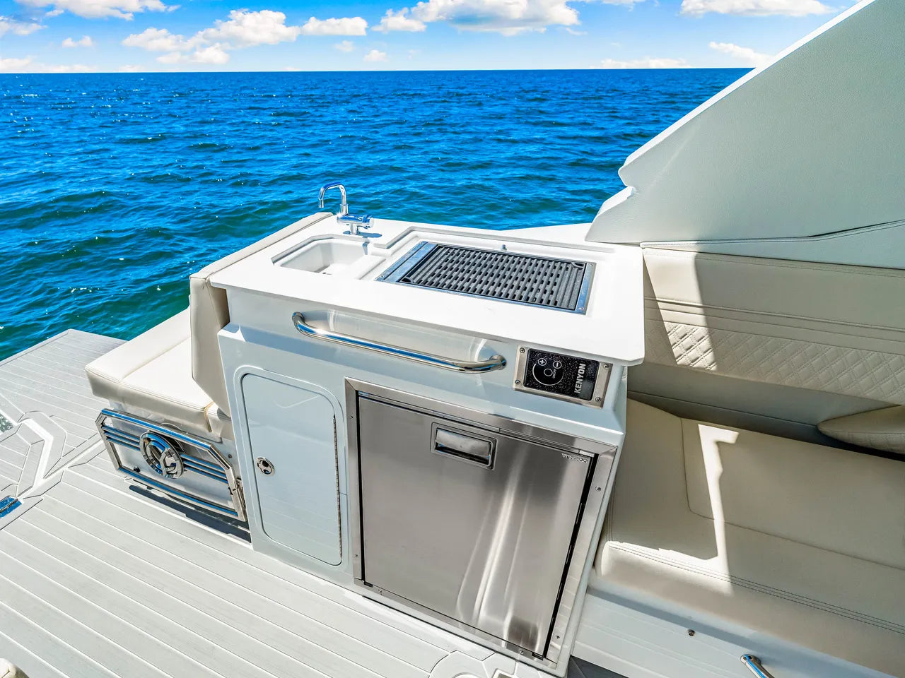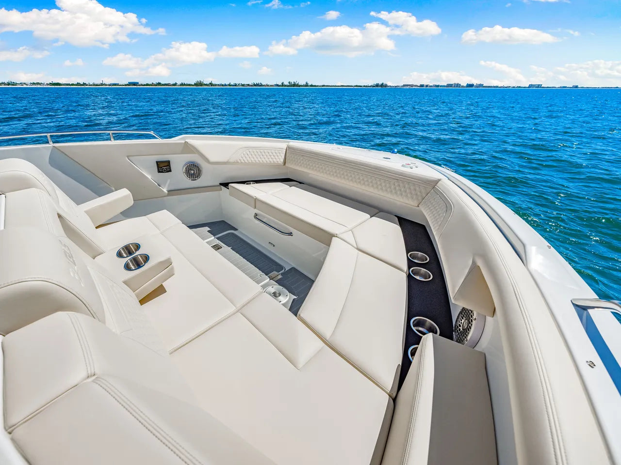 Engineered for adventure, the 34 GLS Outboard boasts impressive power and agility, ensuring every journey is an exhilarating experience. Experience swift acceleration and smooth handling as you glide through the waves, making your days on the water truly unforgettable.