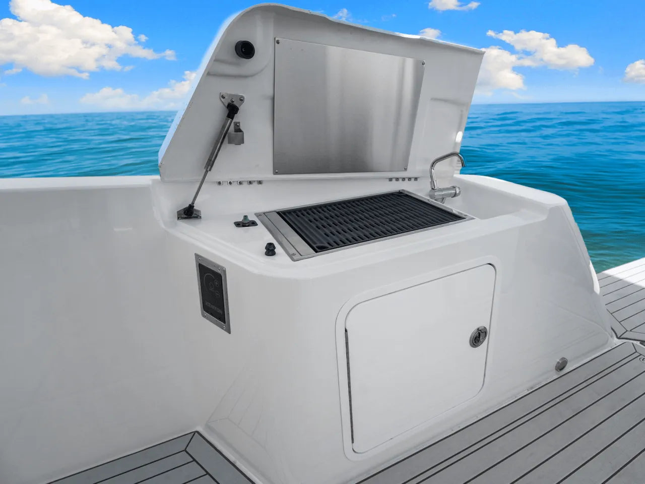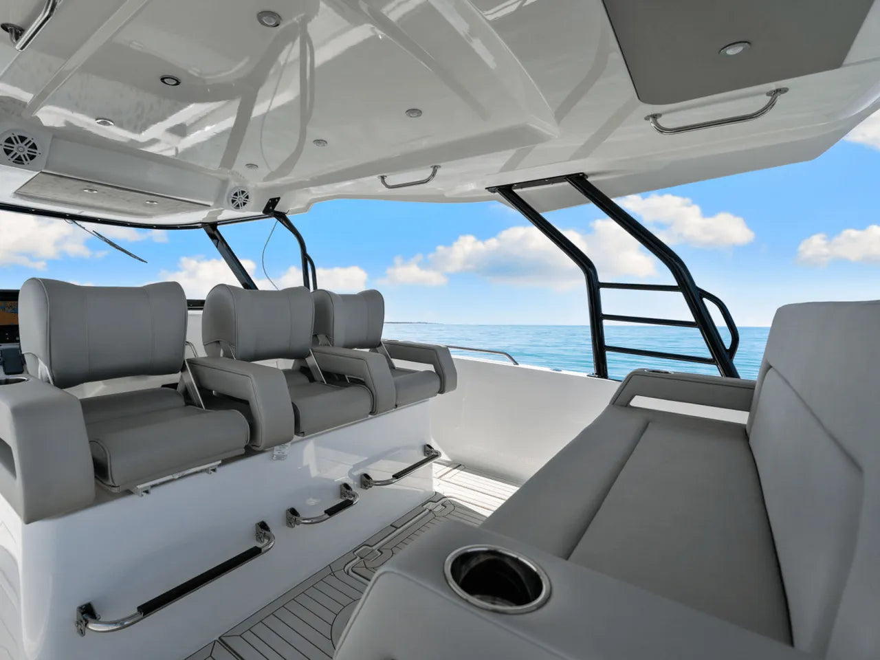 The 38 VTR showcases innovative design elements and high-quality materials, creating a sophisticated atmosphere that’s perfect for both entertaining and relaxation. Its spacious interiors and stylish furnishings invite you to indulge in the ultimate boating lifestyle.