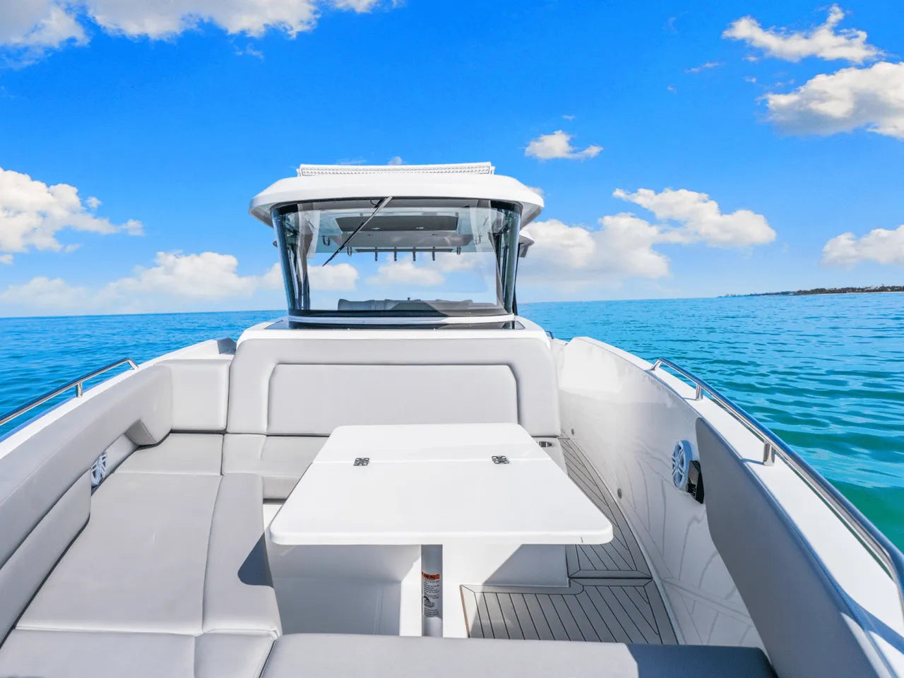 With its powerful engines and sleek design, the 38 VTR offers exhilarating speed and unparalleled handling on the water. Whether you're cruising along the coastline or navigating through vibrant waters, this luxury boat guarantees a seamless blend of comfort and performance.