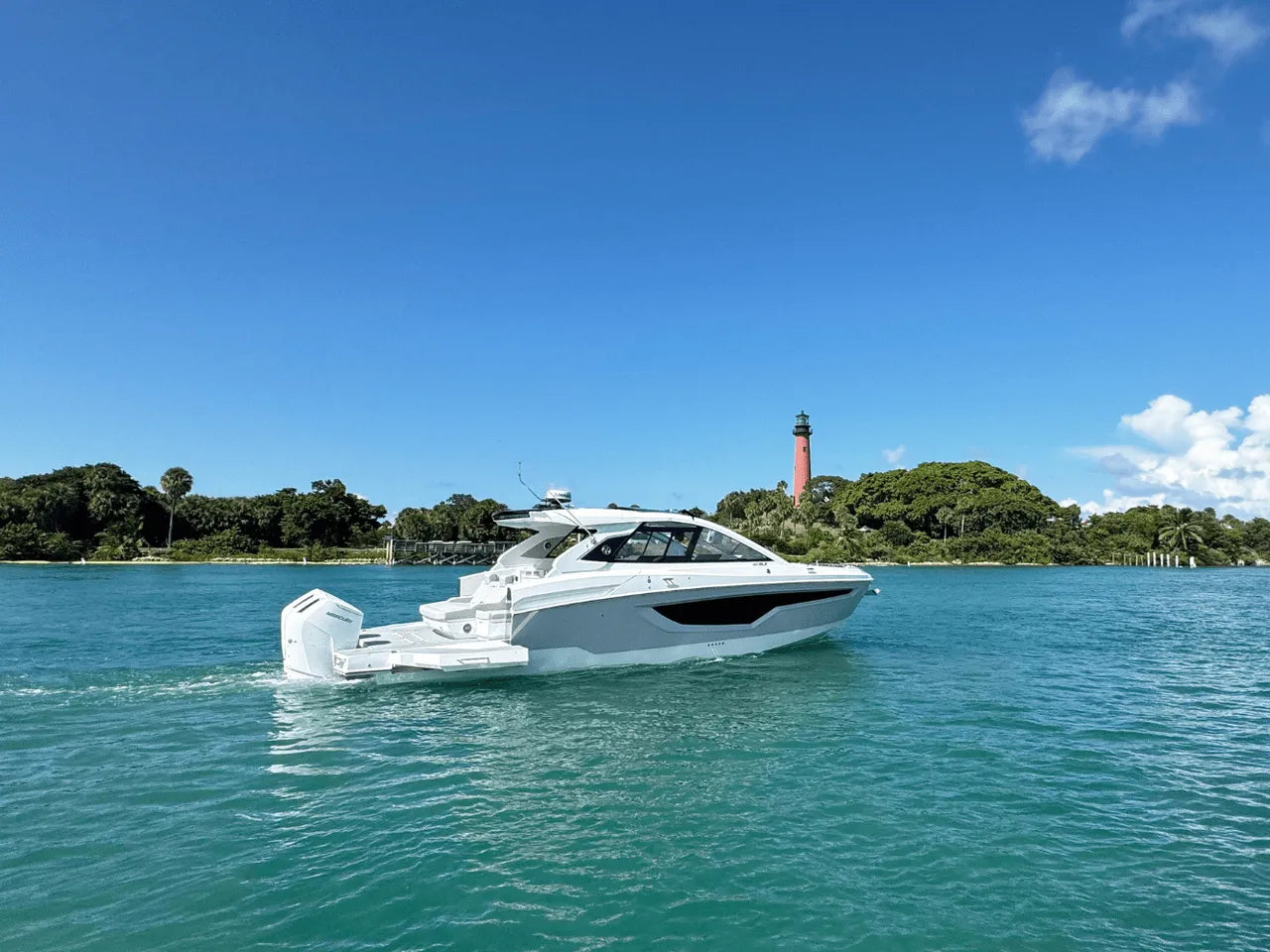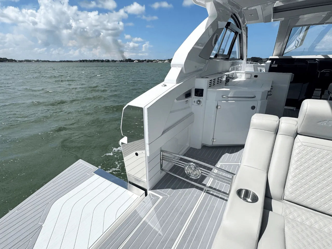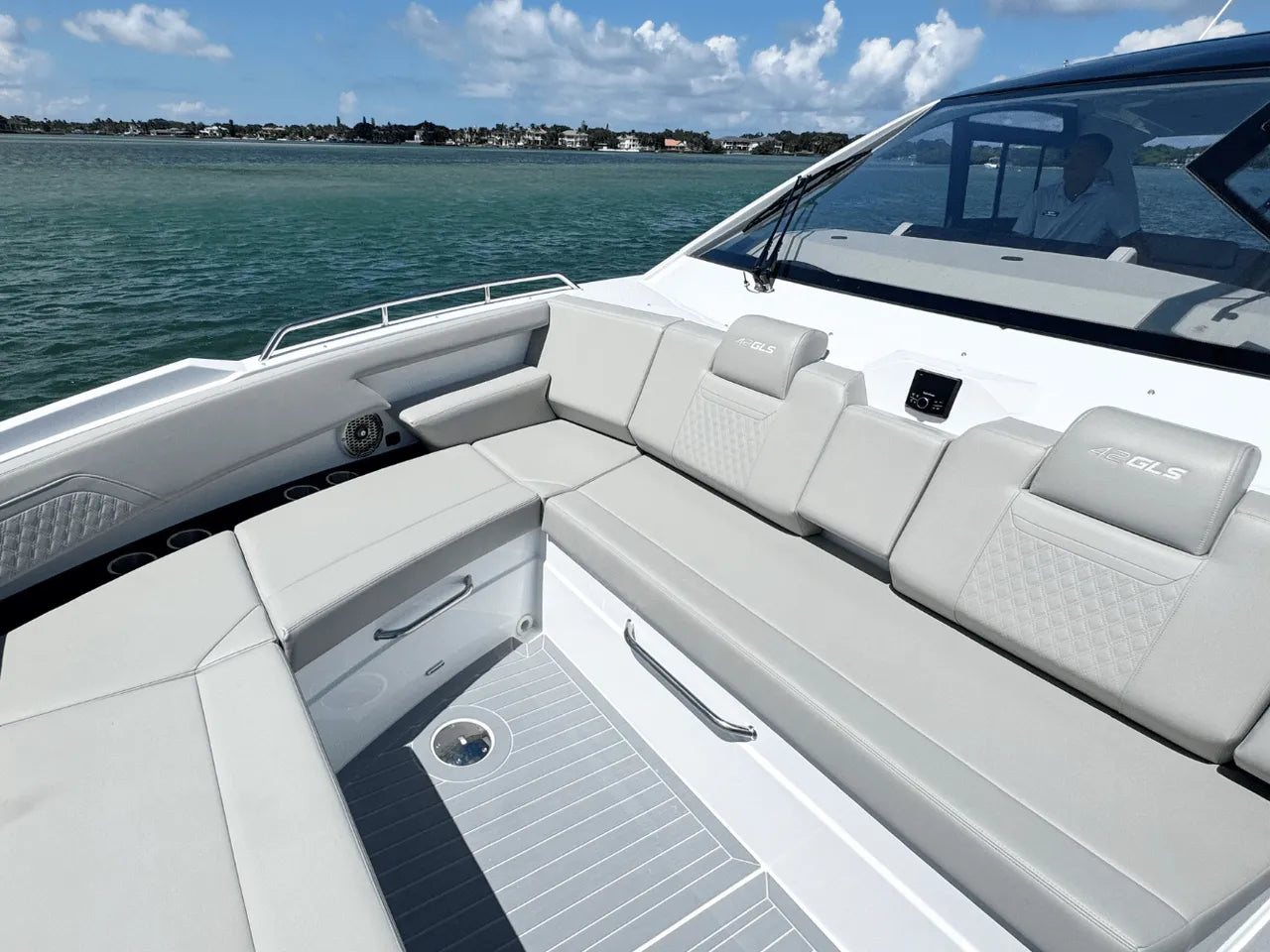 Embark on a luxurious adventure with this brand-new vessel from Cruisers Yachts, a masterpiece of elegance and performance. Imagine the thrill of cruising the waters in the latest model of the 42 GLS Outboard, setting new standards in design and comfort.