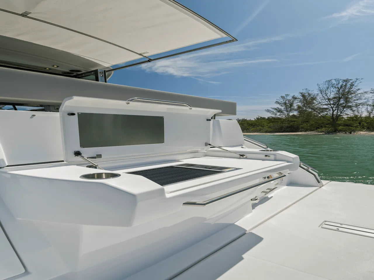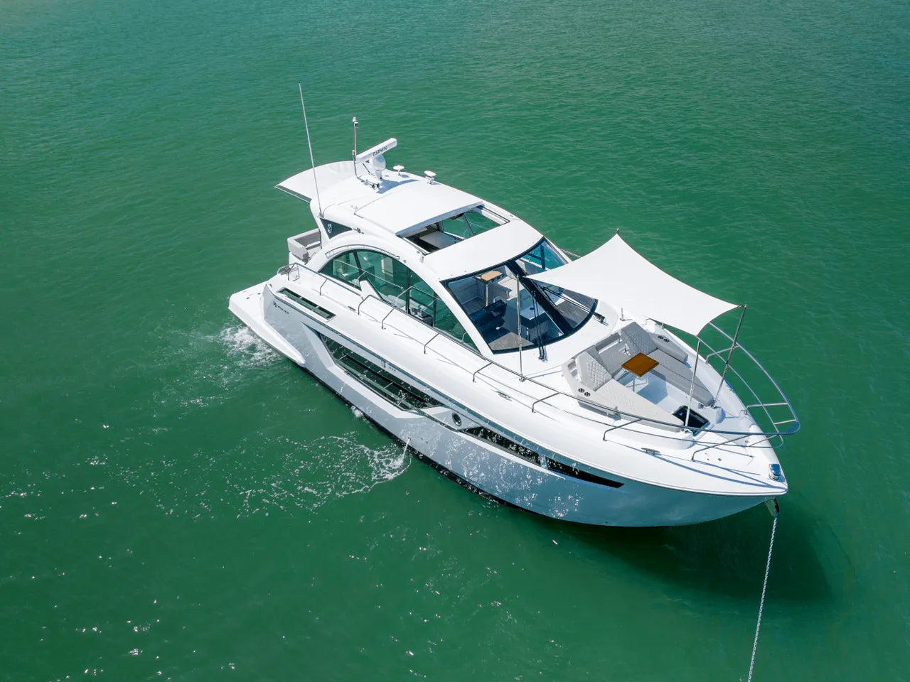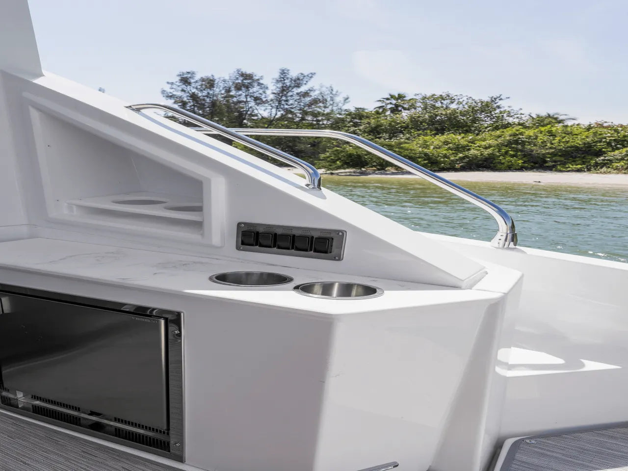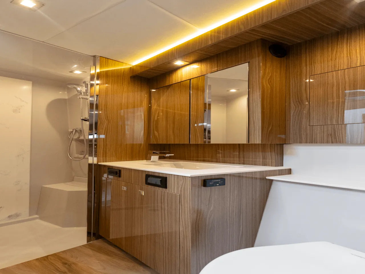 This yacht features spacious interiors adorned with premium materials and modern amenities, creating an elegant escape for you and your guests. From the well-appointed galley to the inviting lounge areas, every detail embodies comfort and sophistication.
