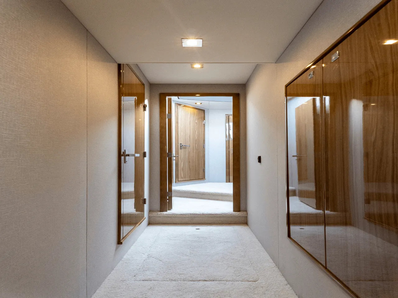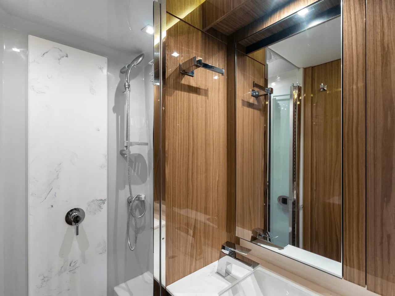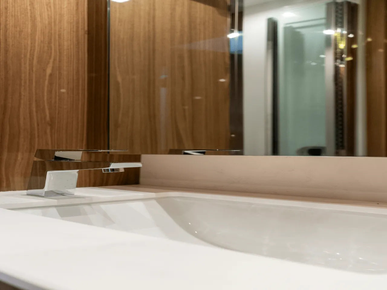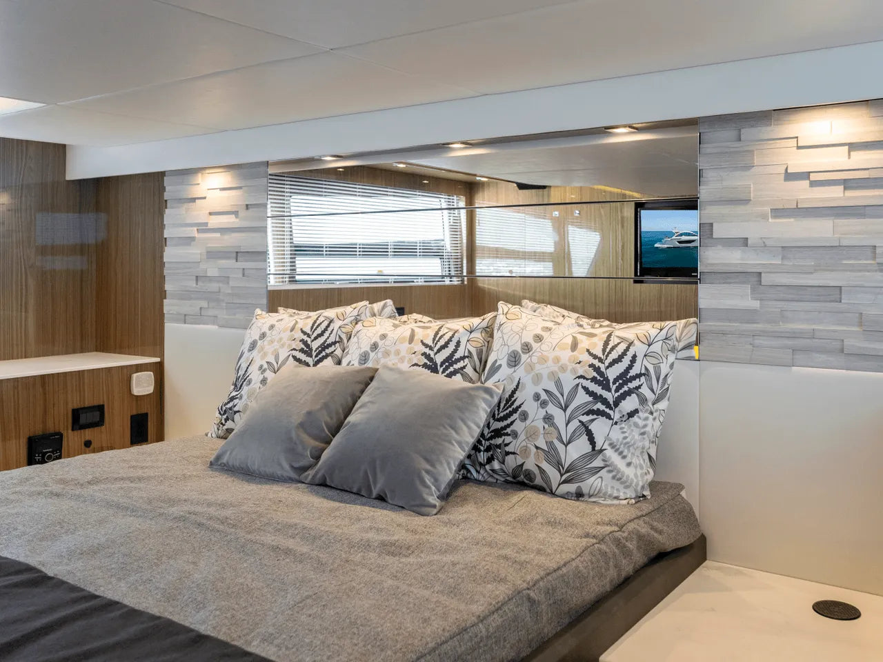 This yacht features spacious interiors adorned with premium materials and modern amenities, creating an elegant escape for you and your guests. From the well-appointed galley to the inviting lounge areas, every detail embodies comfort and sophistication.
