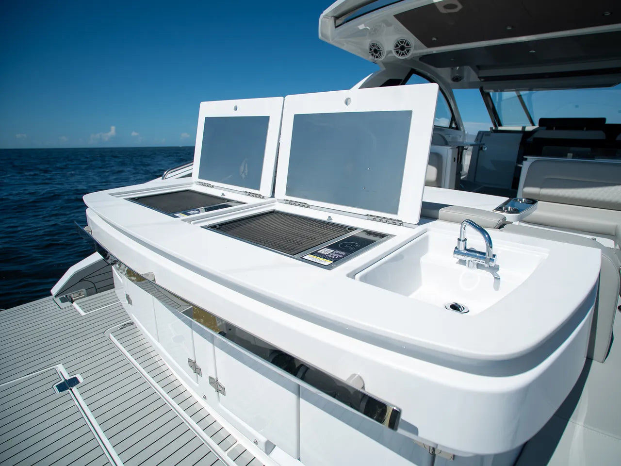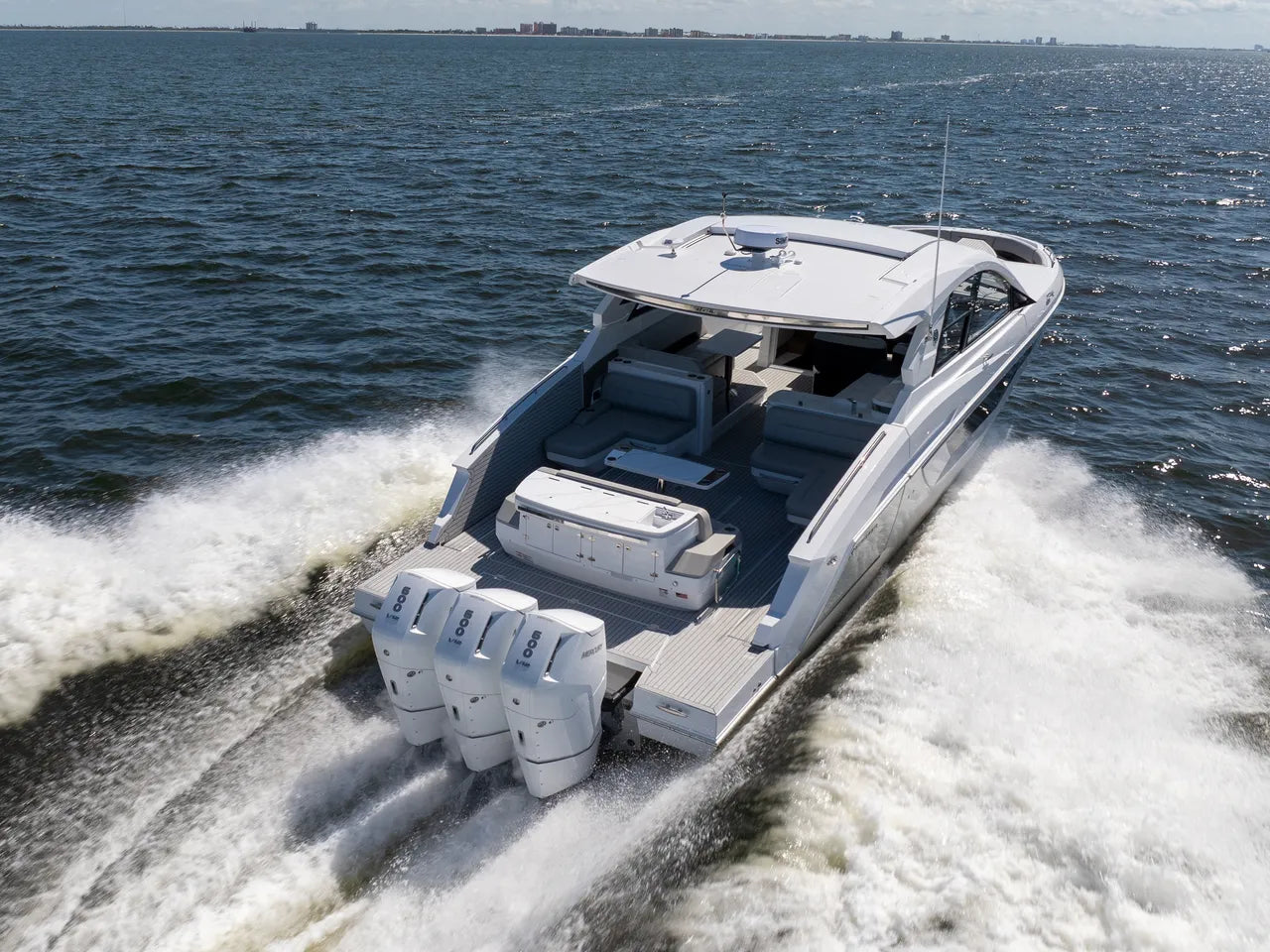 With cutting-edge engineering, the 50GLS OB delivers exceptional handling and breathtaking speed, making every outing a thrill. Whether you’re gliding across calm waters or navigating waves, this luxury boat provides a smooth and powerful ride.